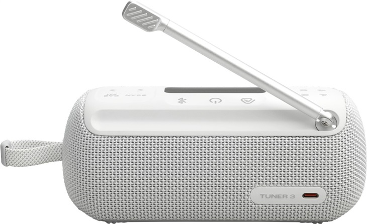 Přenosné rádio DAB/DAB+/FM s Bluetooth s čistým zvukem JBL Pro Sound; výkon 70 W RMS; frekvenční odezva 75Hz - 20kHz; Bluetooth 5.3; až 15h přehrávání s funkcí Playtime Boost; funkce Auracast™ pro připojení více reproduktorů; 6 tlačítek pro přímé předvolby stanic; aplikace JBL Portable;