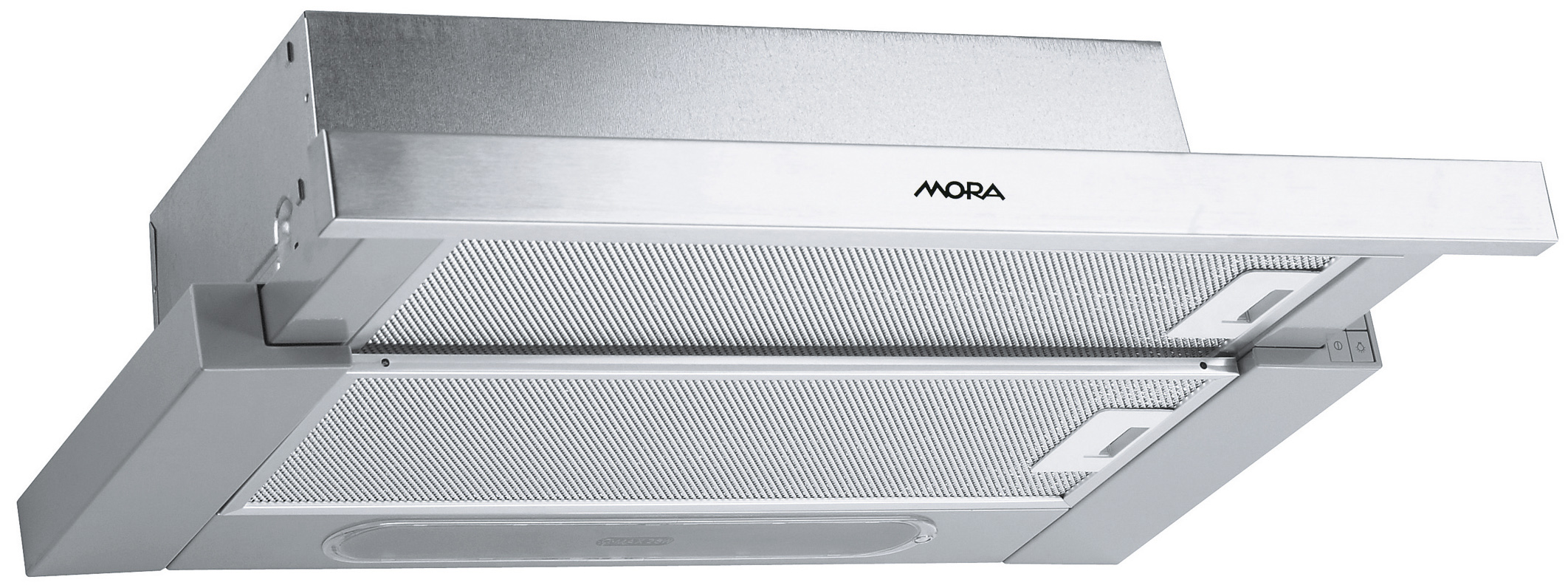 Vestavný odsavač par s výsuvnou lištou MORA OT 651 X v nerezovém provedení, s výkonem 304 m3/h spolehlivě odstraní z menší kuchyně všechny nežádoucí pachy. Díky posuvnému čelu odsavač dokonale splyne s kuchyňskou linkou, protože motor s horním odtahem je skrytý uvnitř skříňky. Odsavač má 3 rychlostní stupně, ovládá se tlačítky, umístěnými pod lištou. Led osvětlení perfektně osvítí varnou plochu, díky čemuž budete dokonale vidět do hrnců či pánví s připravovaným pokrmem. Není hlučný a je opatřen omyvatelnými filtry proti mastnotě, které lze mýt v myčce. Při dokoupení uhlíkových filtrů lze odsavač provozovat i na recirkulaci.