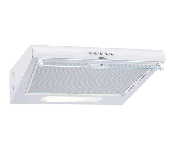Podvěsný odsavač MORA OP 540 W v šířce 50 cm v bílém provedení je určen pro instalaci pod skříňku, ale může být nainstalován i bez ní. Díky 6 odtahům přes zeď a možnosti recirkulace je ideálním řešením do panelákových kuchyní. 3 rychlostní tlačítkové ovládání s výkonem až 178 m3 / h a hlučností 63 dB spolehlivě odstraní nepříjemné pachy a mastnotu. LED osvětlení je samozřejmostí. Odsavač je vybaven přední skleněnou náběhovou lištou, která pomáhá zadržet páru. Hliníkové filtry proti mastnotě lze mýt v myčce a při dokoupení uhlíkových filtrů lze odsavač provozovat i na recirkulaci.