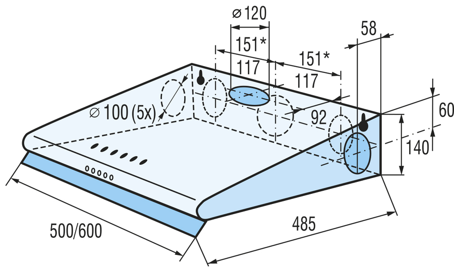 - horní odtah ø 120 mm