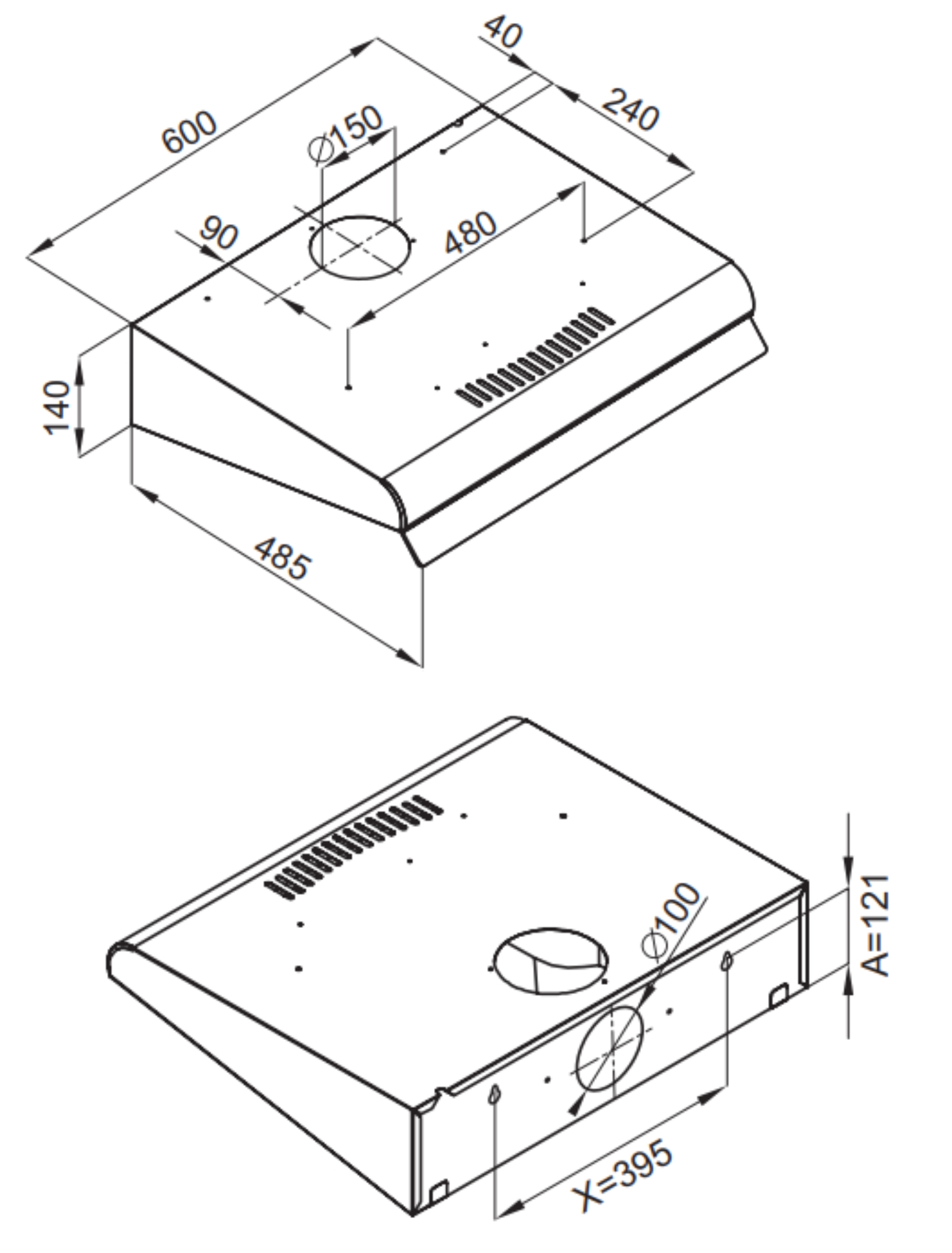 - horní odtah ø 150 mm