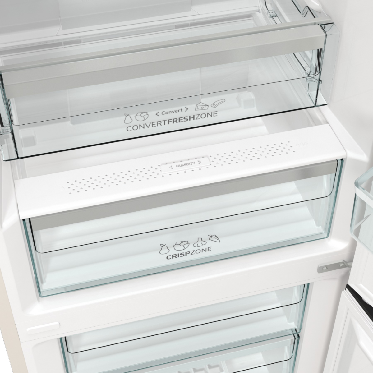 Prostorná zásuvka CrispZone je navržena tak, aby uchovala živiny a prodloužila čerstvost skladované zeleniny a ovoce díky nízké teplotě a možnosti regulace úrovně vlhkosti.