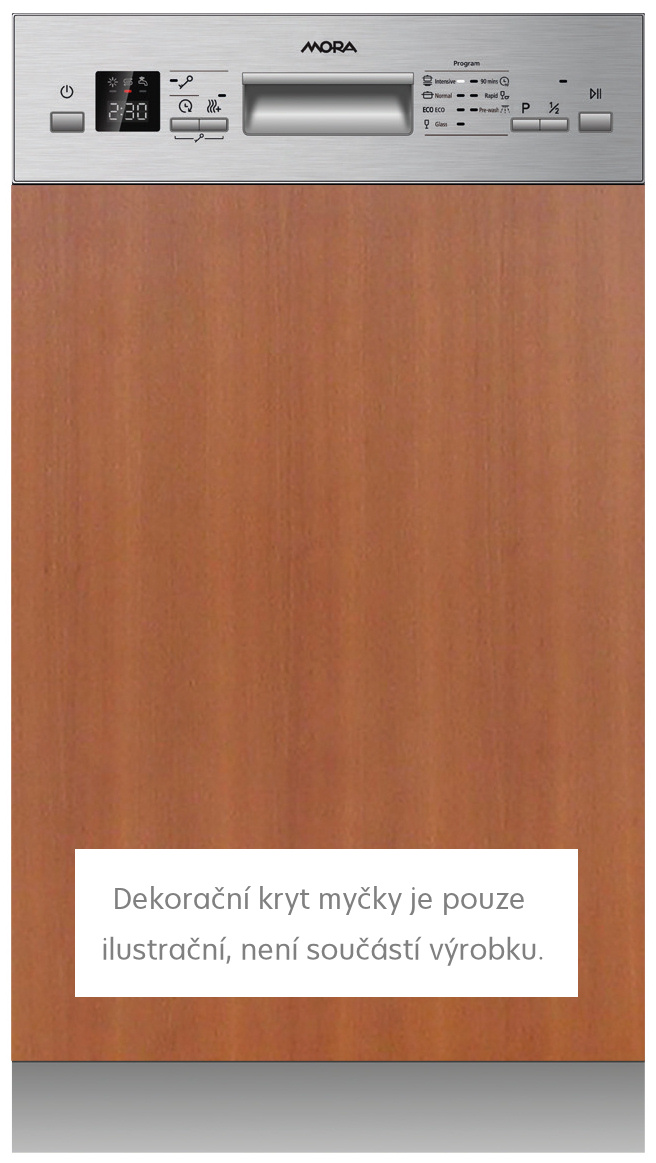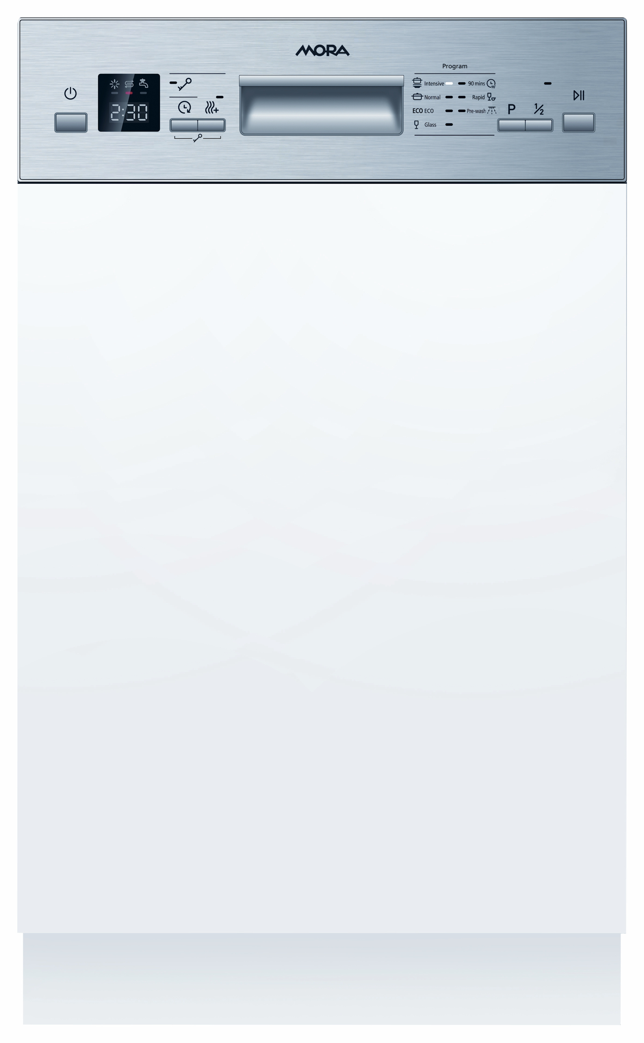 Vestavná myčka Mora VM 545 X v šířce 45 cm se 2 zásuvkami je vhodná i do menších rodin nebo kde není dostatek prostoru v kuchyni a je do ní možné umístit 9 jídelních sad najednou. Předení ovládací panel se ovládá tlačítky. Se systémem AquaStop se nemusíte obávat nemilého překvapení v podobě vytopení. Přívodní hadice se totiž skládá ze dvou odolných vrstev a hned u vodovodního kohoutku je bezpečnostní ventil, který vám zaručí maximální ochranu vašeho domova před poničením vodou.