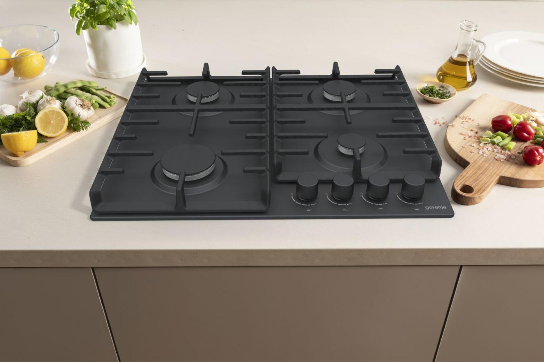 Knoflíky plynových varných desek jsou ergonomicky navrženy a uživatelsky příjemné, s velkými a dobře viditelnými ukazateli. Sofistikované materiály nabízejí dokonalé uchopení. Inovativní konstrukce varné desky zajišťuje optimální umístění knoflíků pro snadnou manipulaci a zároveň udržuje prostor kolem nich bezpečný a chladný.