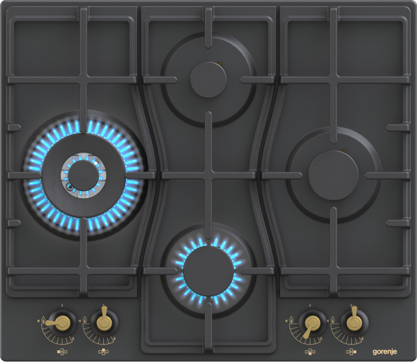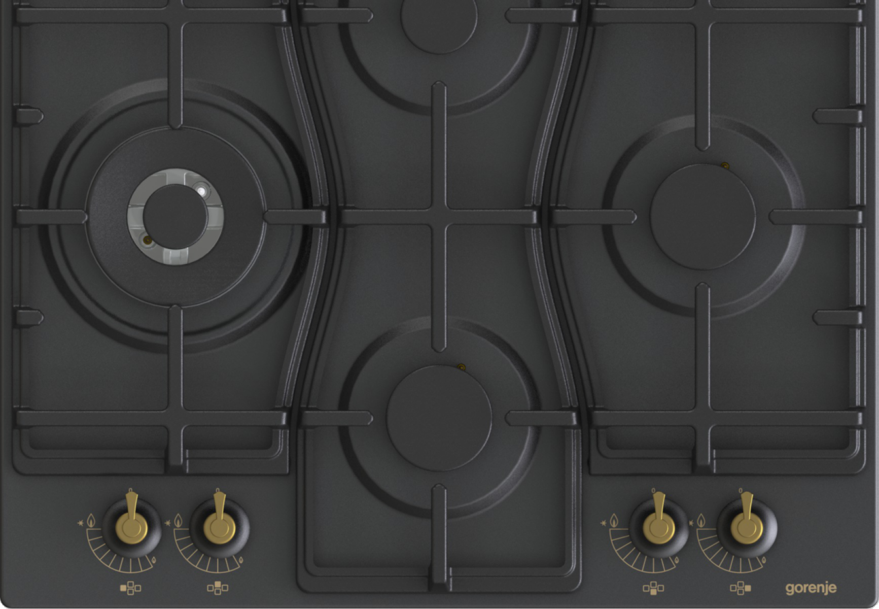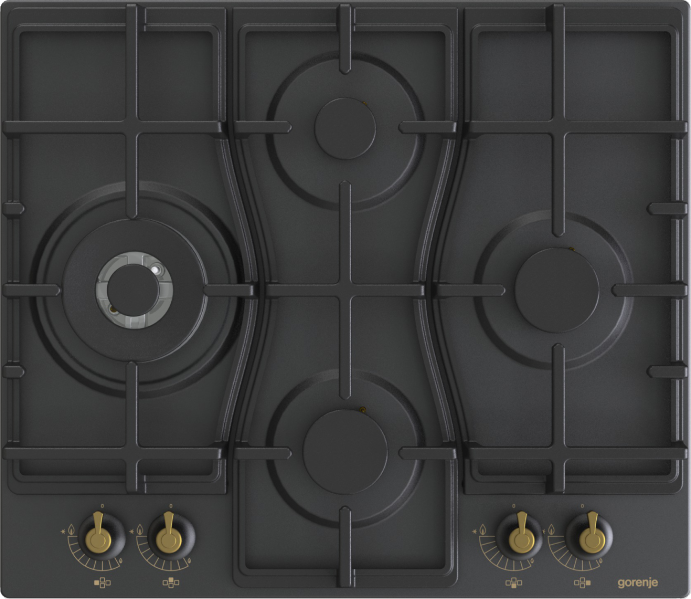 Speciální uspořádání hořáků ve tvaru diamantu umožňuje lepší přehled o procesu vaření. Nabízí více prostoru pro velké hrnce, pánve nebo wok na dvou větších a výkonnějších hořácích umístěných vlevo a vpravo. Tvar litinové mřížky sleduje funkční uspořádání hořáků a esteticky doplňuje vzhled varné desky.