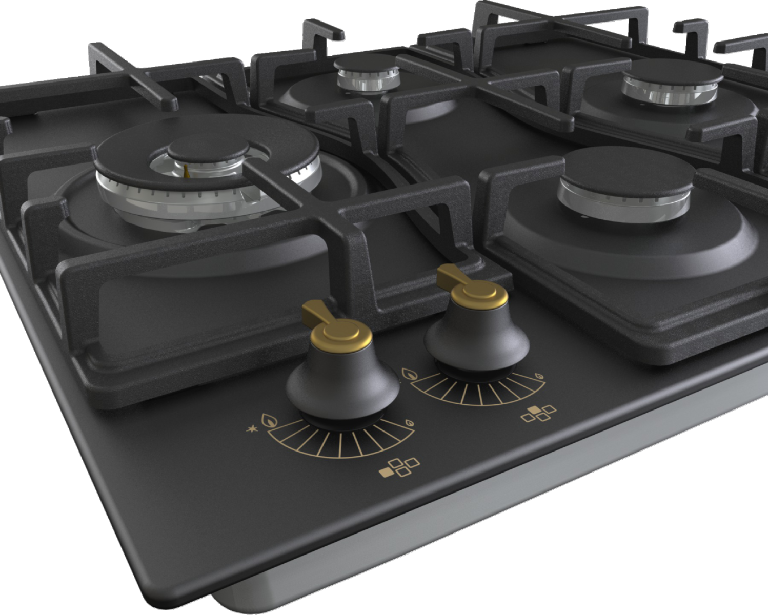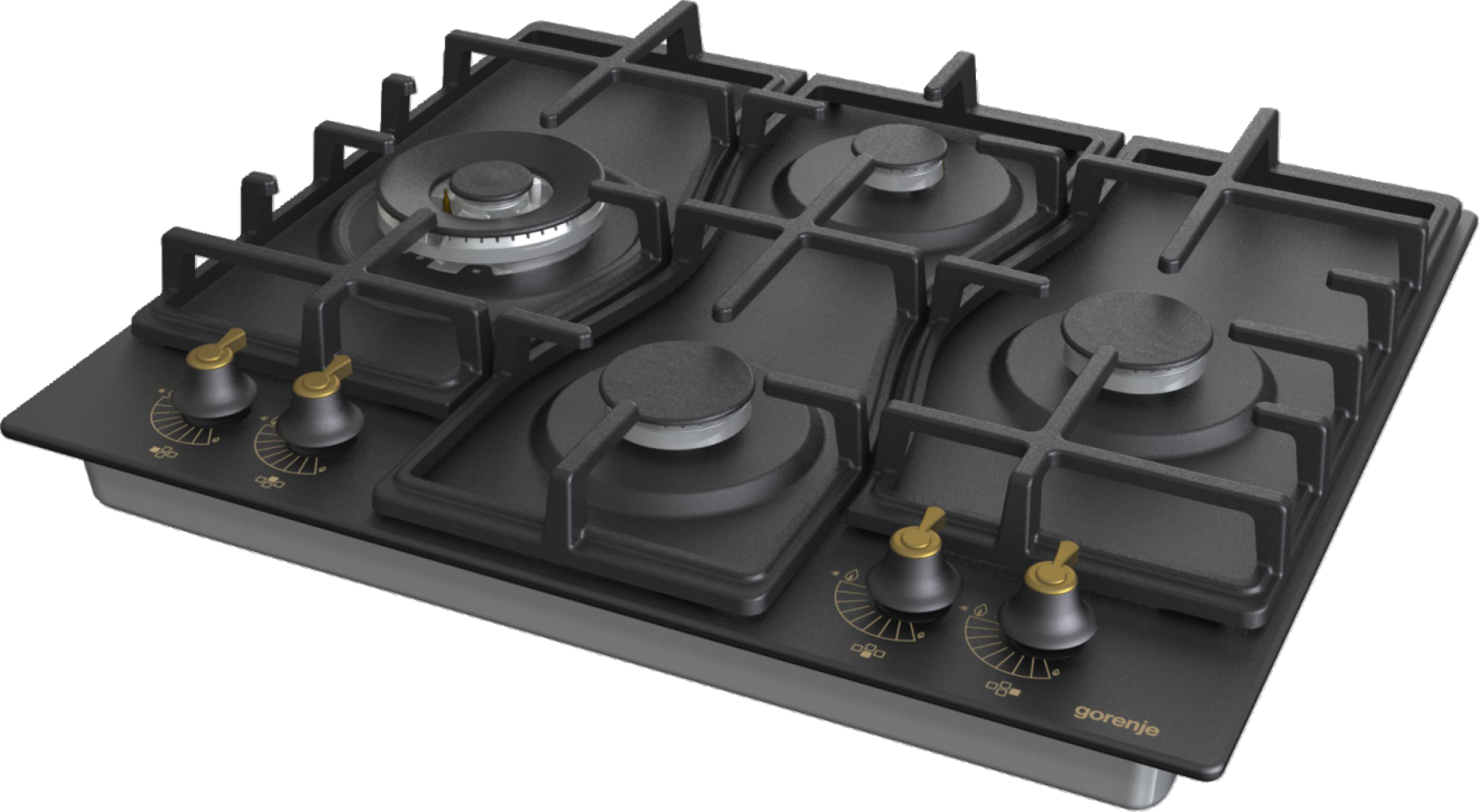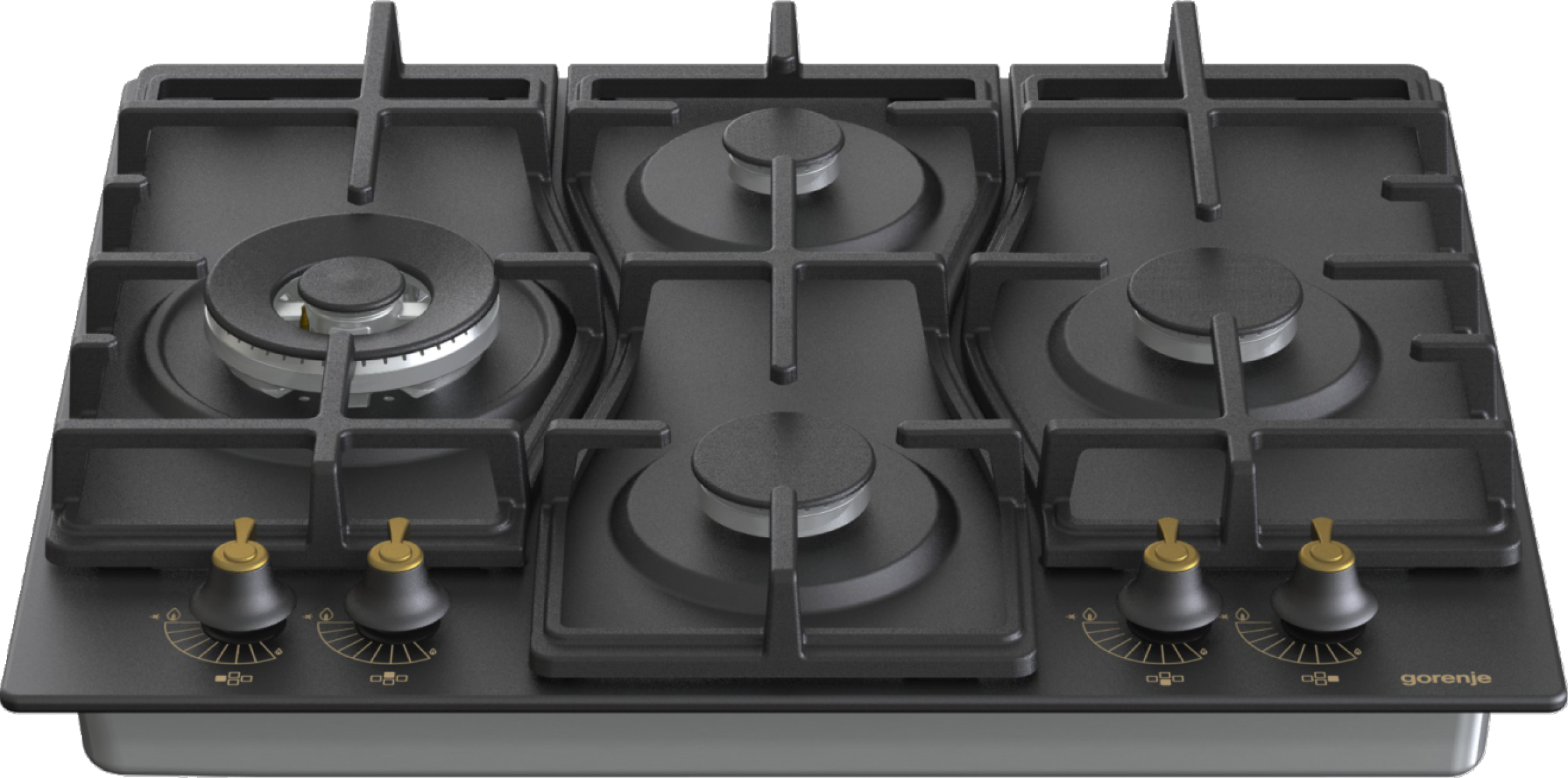 Speciální uspořádání hořáků ve tvaru diamantu umožňuje lepší přehled o procesu vaření. Nabízí více prostoru pro velké hrnce, pánve nebo wok na dvou větších a výkonnějších hořácích umístěných vlevo a vpravo. Tvar litinové mřížky sleduje funkční uspořádání hořáků a esteticky doplňuje vzhled varné desky.