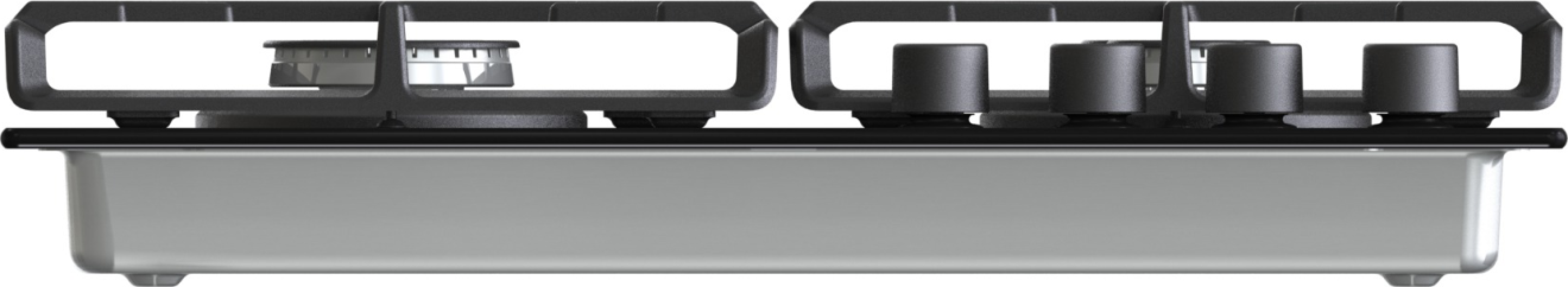 A sleek glass surface paired with gas burners, offering a stylish design, precise cooking performance, and effortless cleaning for a modern kitchen experience.