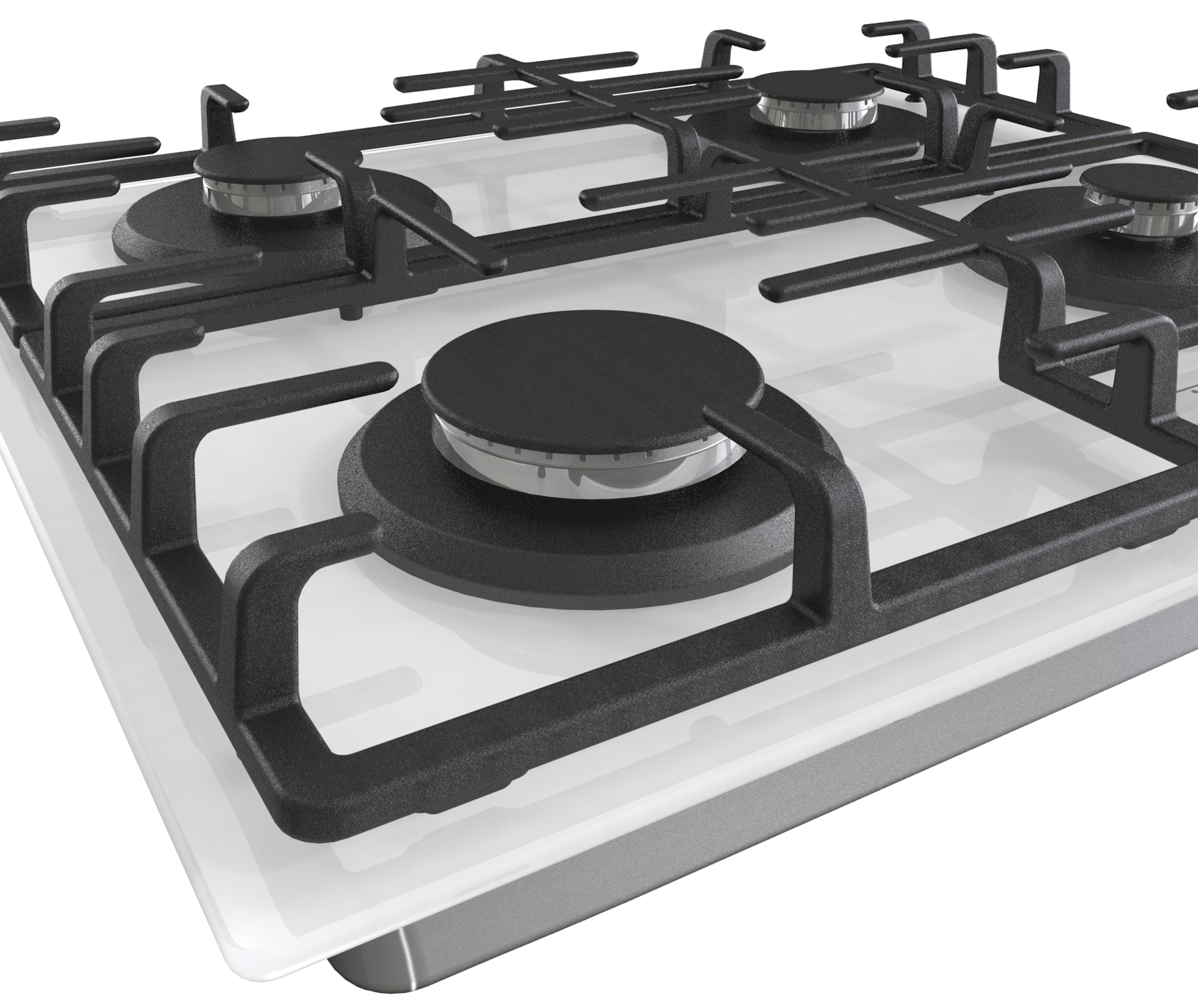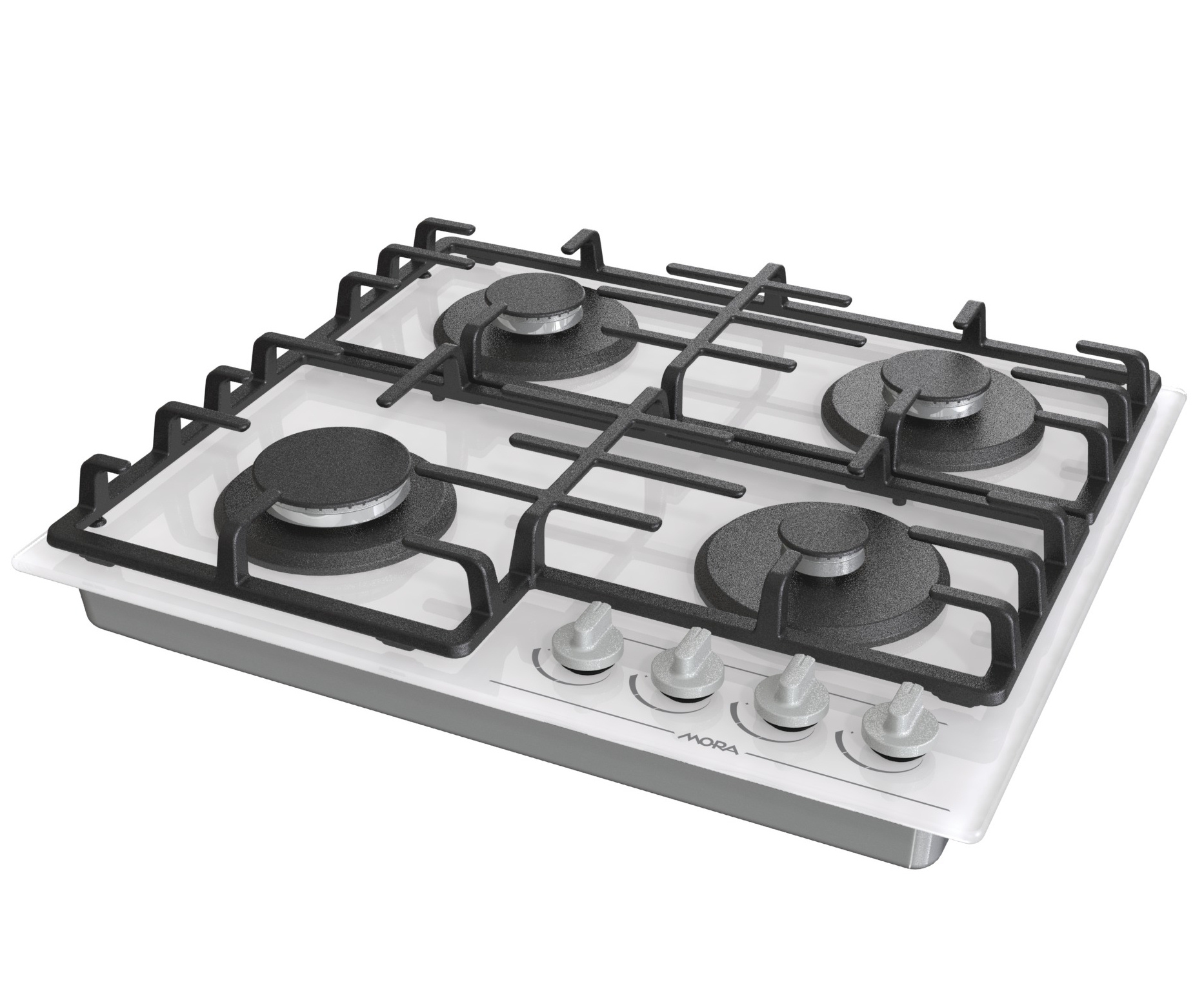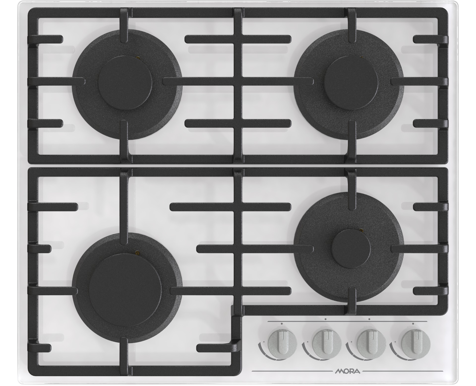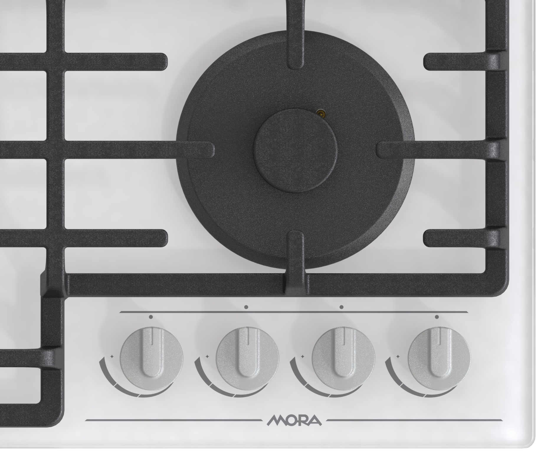 Plynová varná deska MORA VDP 645 GW7 na bílém tvrzeném skle splňuje nejvyšší nároky vaření na plynu a snadné údržby. Deska má 4 plynové hořáky osazené pojistkami STOP GAS, které Vám zajistí pocit bezpečí. Pojistka STOP GAS automaticky zastaví přívod plynu při náhodném zhasnutí plamene hořáku. Integrované elektrické zapalování komfortně uložené přímo jednotlivých knoflících kohoutů je dnes již samozřejmostí. Hořáky jsou kryté dvoudílnou litinovou mřížkou, která zajistí bezpečný posun nádobí ve všech směrech.