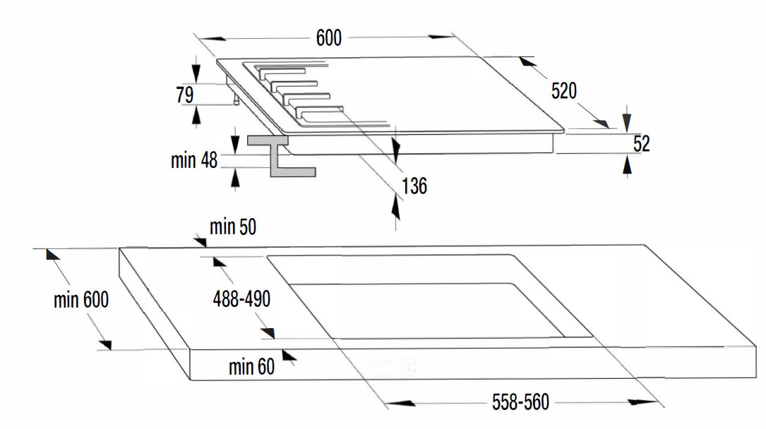| Instalační hloubka oddílu | 480 mm |