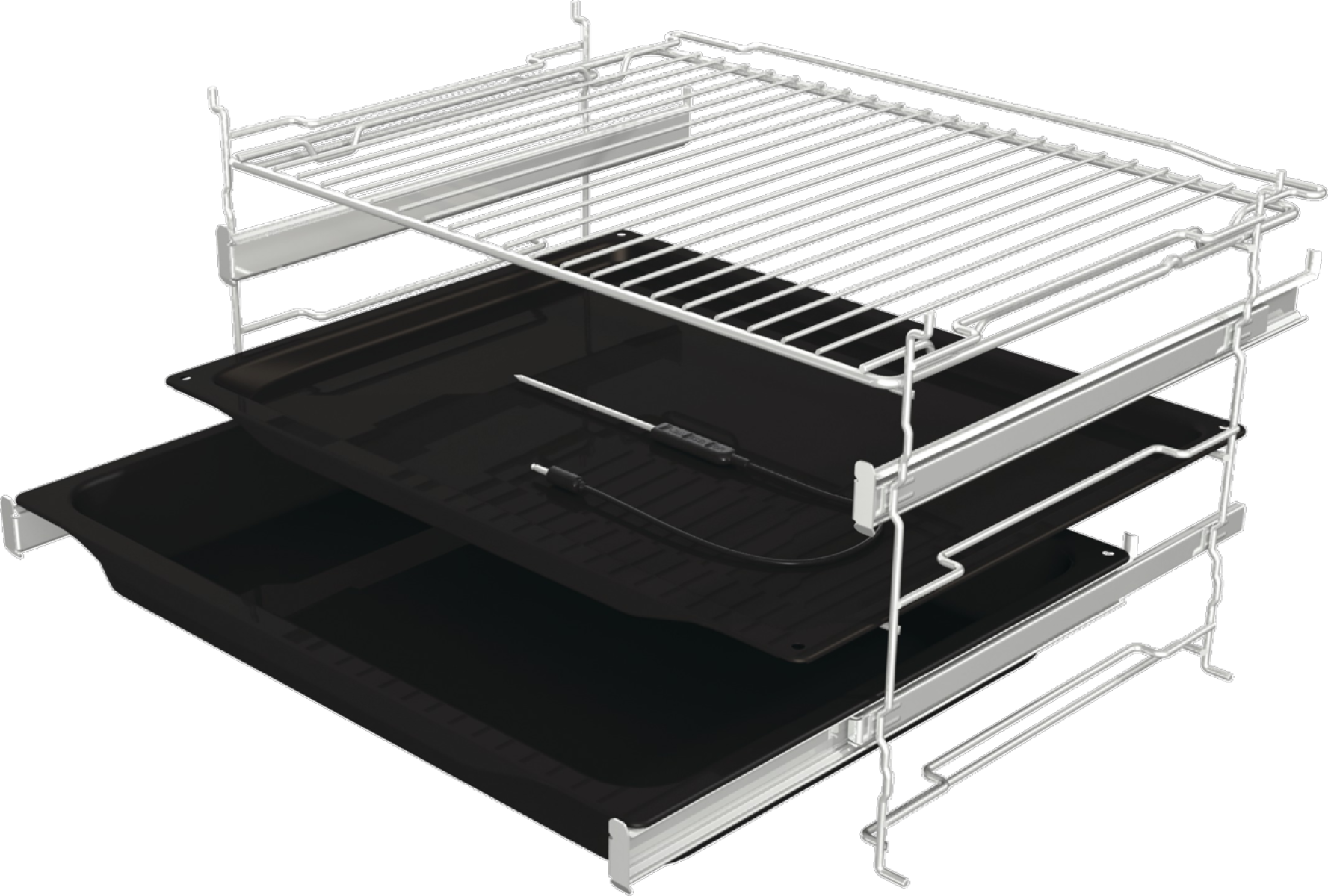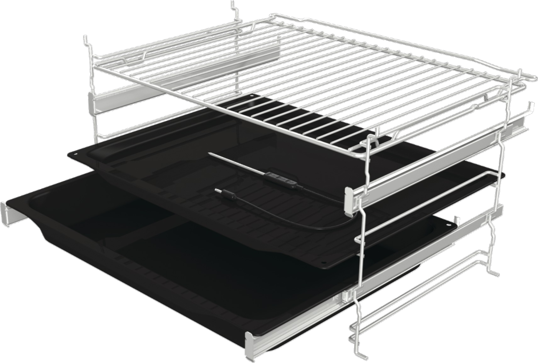 Teleskopická vodítka s plynulým posunem poskytují dokonalý přehled o procesu pečení a bezpečnější a snadnější manipulaci s plechy na pečení. V závislosti od modelu jsou trouby Gorenje OptiBake vybaveny ¾ výsuvnými teleskopickými vodítky na jedné nebo dvou úrovních. Jako další možnost nabízíme také flexibilní jednoúrovňové teleskopické vodítka, které lze jednoduše zacvaknou na požadovanou úroveň.