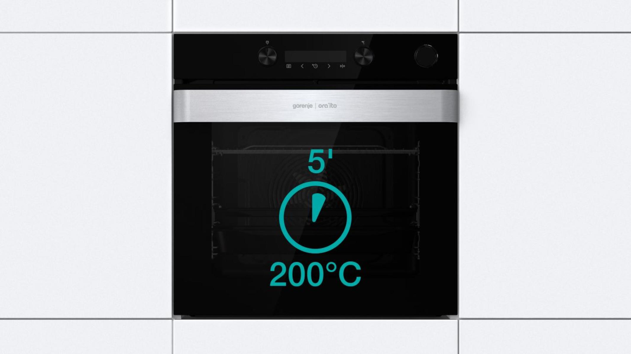 Trouby OptiBake dosáhnou teploty až 200 °C za pouhých 5 minut, čímž ušetří 30 % času potřebného pro standardní předehřívání, čímž se řadí mezi trouby s nejrychlejším předehřevem na trhu.To je velmi výhodné pro recepty, které vyžadují předehřátou troubu. Světelný a zvukový signál (v závislosti na modelu) vás informuje, když se dosáhne požadované teploty.