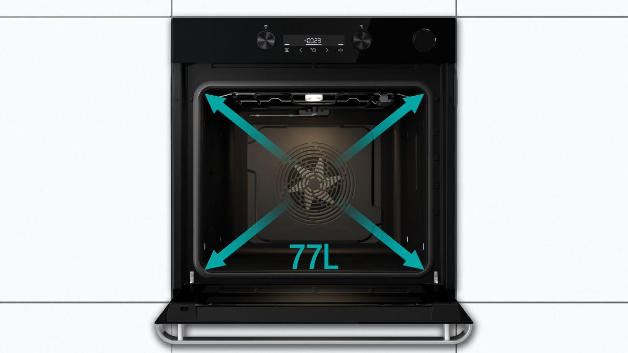 Jste připraveni na recepty XXL? Inovativní konstrukční řešení přineslo zvětšení interiéru, takže naplno využije celou šířku trouby. Na každém plechu na pečení je více místa a vynikající technologie zajistí rovnoměrné pečení jídla na všech úrovních.