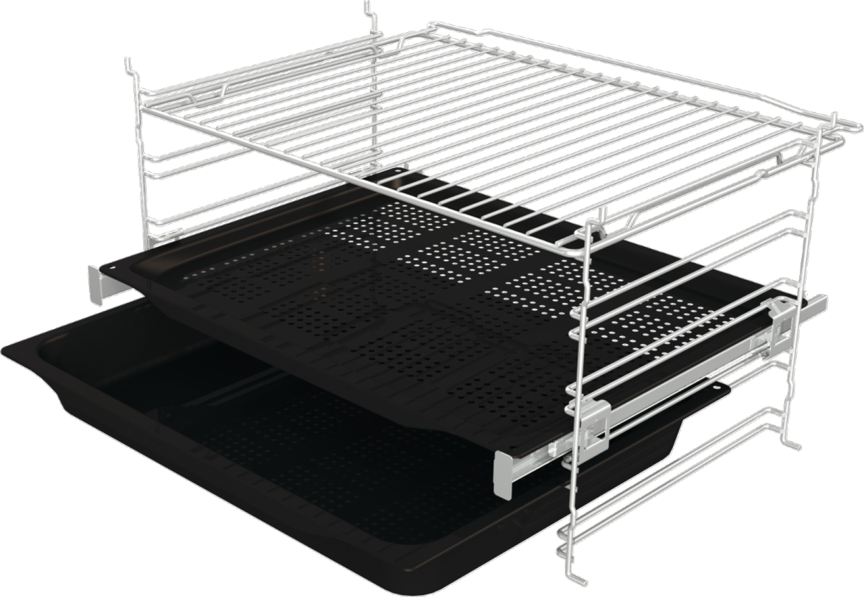 | Vedení plechů v troubě | 1x částečně vysouvací teleskopy s klik systémem |