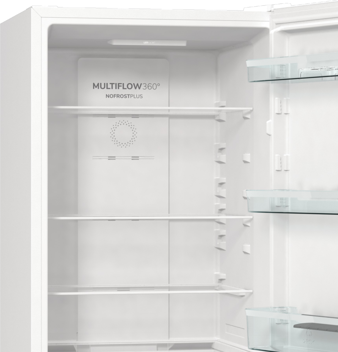 Intenzivní cirkulace chladného vzduchu odvádí z mrazničky vlhkost, takže se netvoří námraza na potravinách ani led na stěnách. Není potřeba žádné ruční odmrazování a celý úložný prostor můžete využít naplno. Balíčky i jednotlivé kusy zmrazených potravin se k sobě nelepí, takže vše zůstává čisté, přehledné a vždy po ruce.
