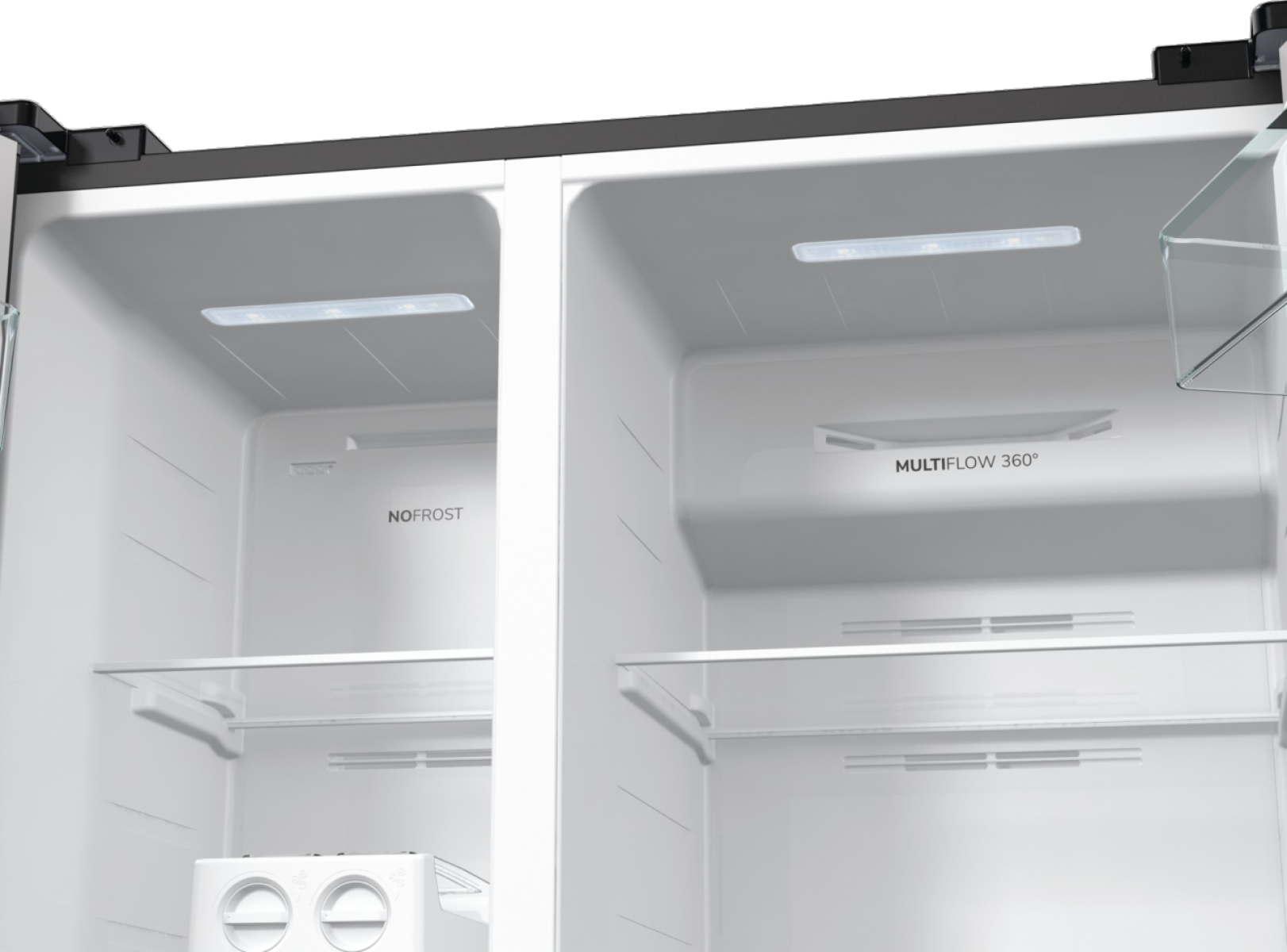 Ventilační systém MultiFlow 360° rovnoměrně rozděluje vzduch v chladícím prostoru, aby se zabezpečila optimální cirkulace vzduchu a nejlepší skladovací podmínky pro vaše potraviny.