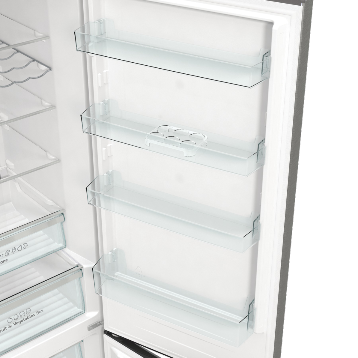 Kovová zadní stěna zvyšuje bezpečnost a odolnost spotřebiče, zatímco její hladký povrch usnadňuje čištění. Pomáhá udržet zadní část chladničky čistou, chráněnou a dlouhodobě ve výborném stavu.