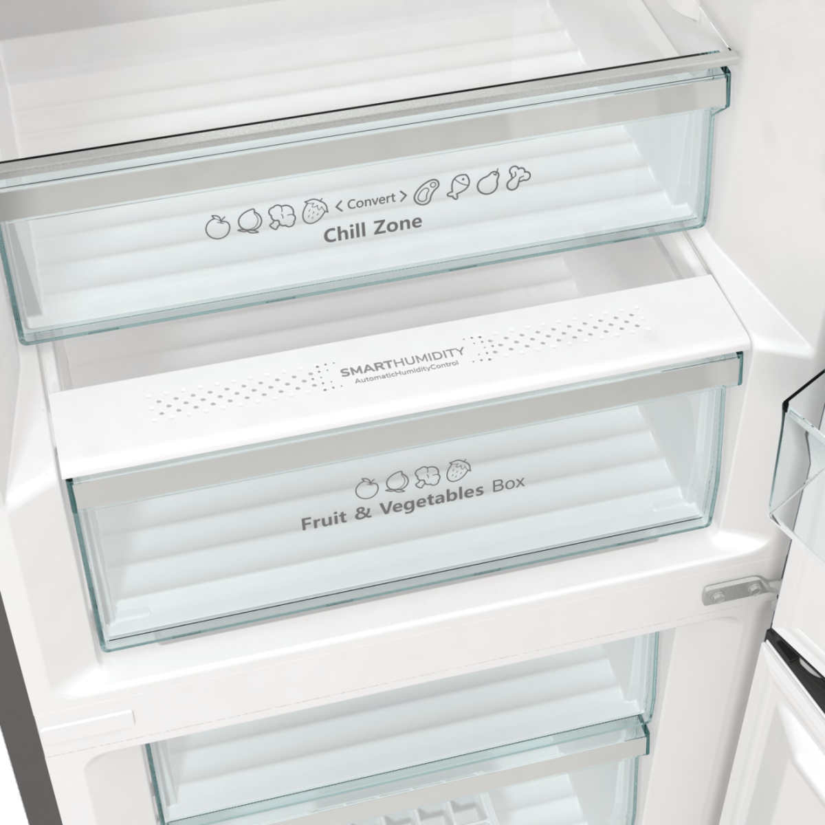 Prodlužte čerstvost s touto pokročilou zásuvkou. Technologie SmartHumidity zajišťuje optimální podmínky, automaticky upravuje úroveň vlhkosti, aby ovoce a zelenina zůstaly déle křupavé a čerstvé.