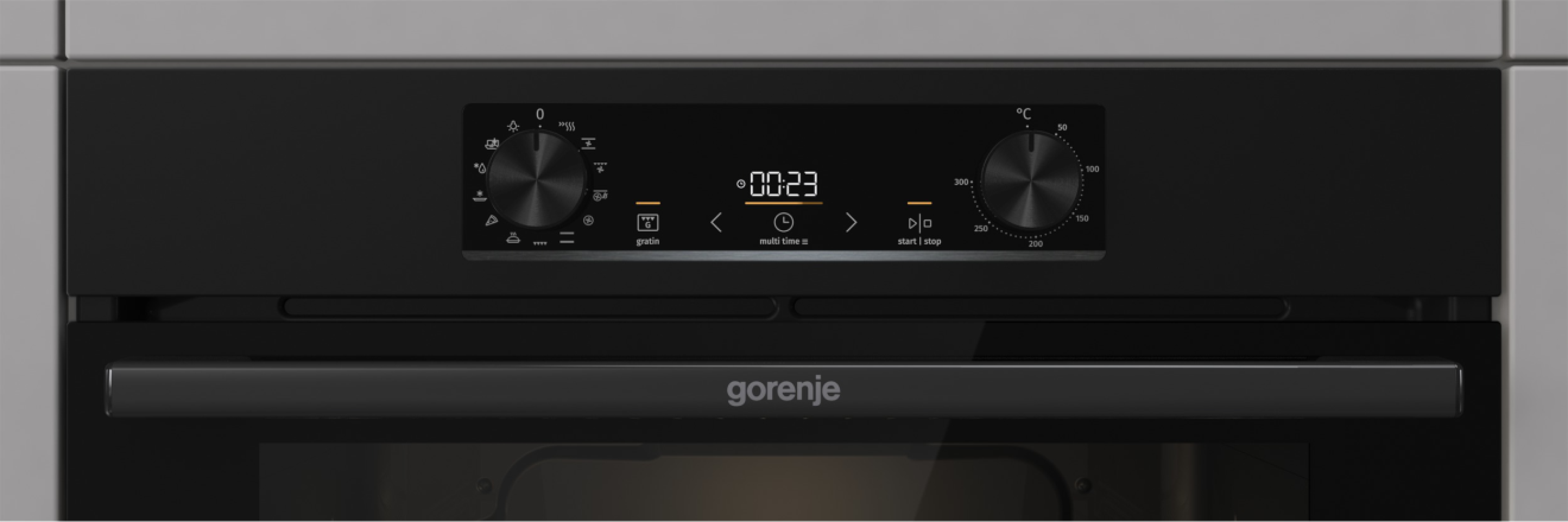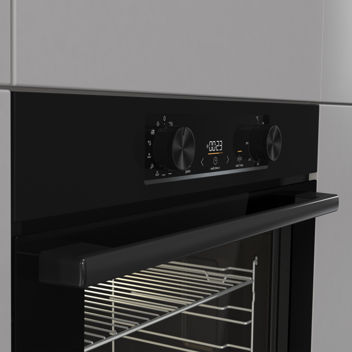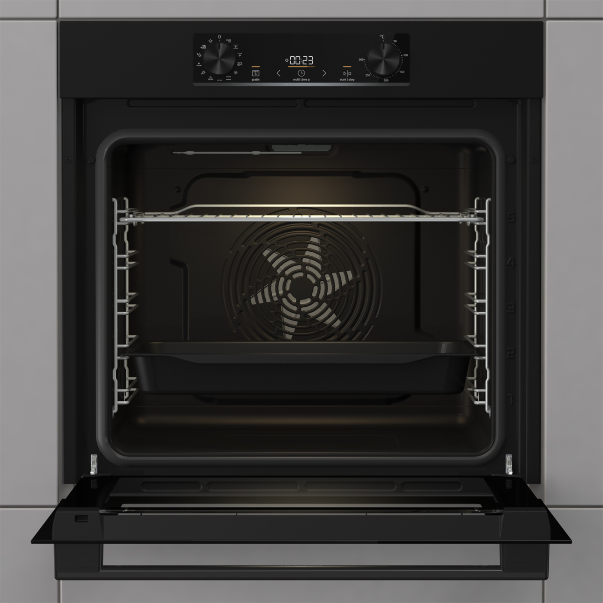 Vestavná PYRO trouba, IconLed, 77 l, 12 režimů ohřevu, drátěná vodítka plechů, A, černá, 59,5 × 59,5 × 54,6 cm