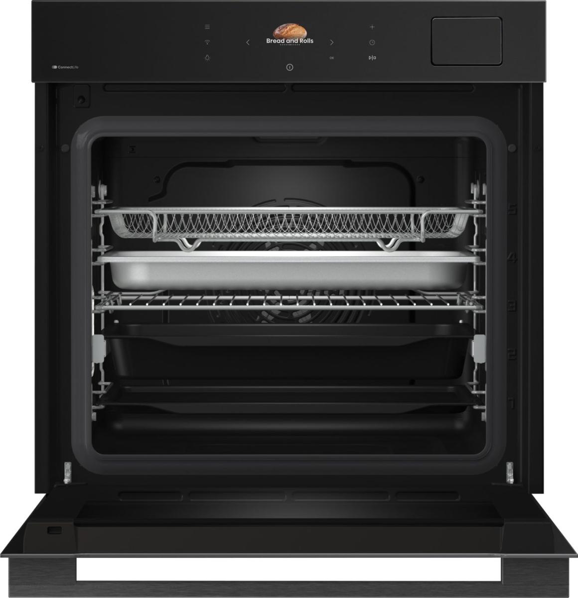 Elegantní černý povrch trouby dodá každé kuchyni moderní vzhled. Dvě vnitřní světla dokonale osvětlují celý pečicí prostor, takže můžete sledovat průběh pečení bez otevírání dvířek a zbytečných tepelných ztrát.
