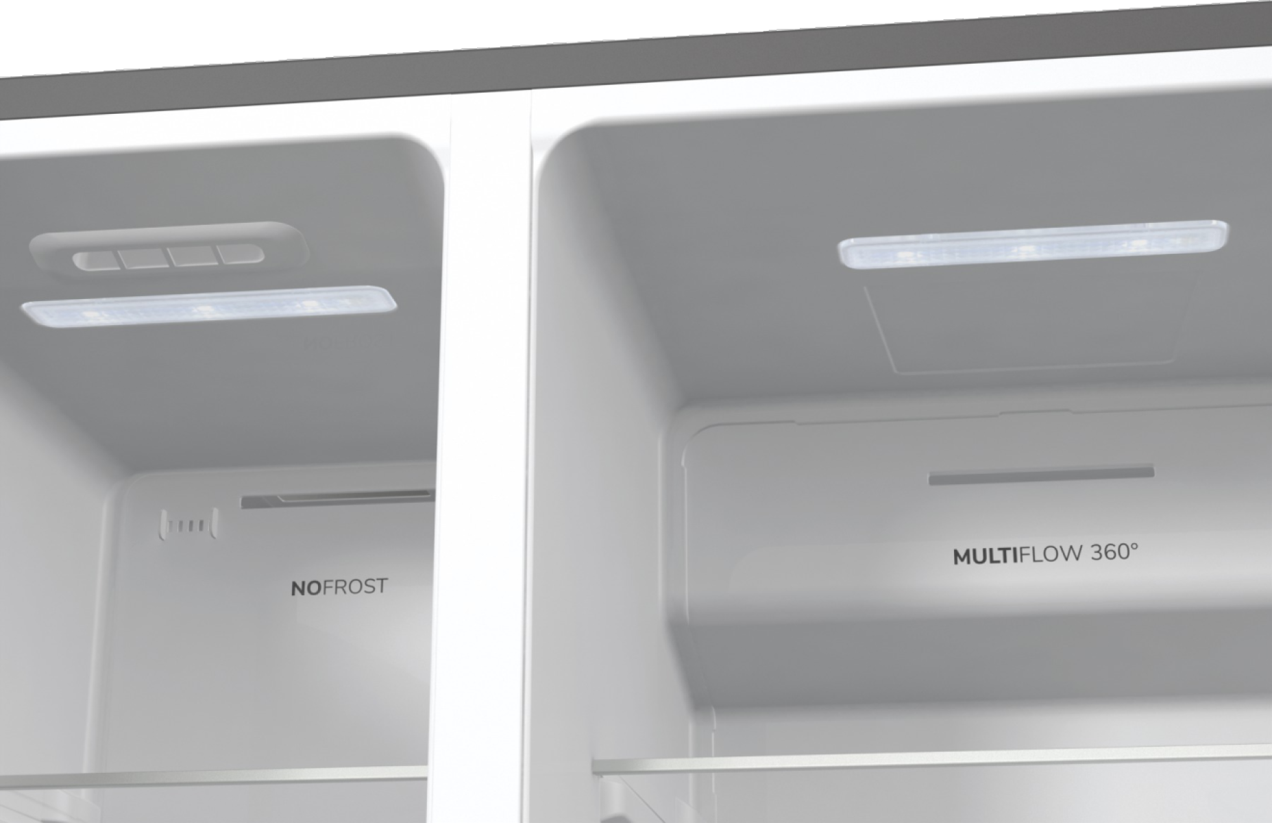 Ventilační systém MultiFlow 360° rovnoměrně rozděluje vzduch v chladícím prostoru, aby se zabezpečila optimální cirkulace vzduchu a nejlepší skladovací podmínky pro vaše potraviny.