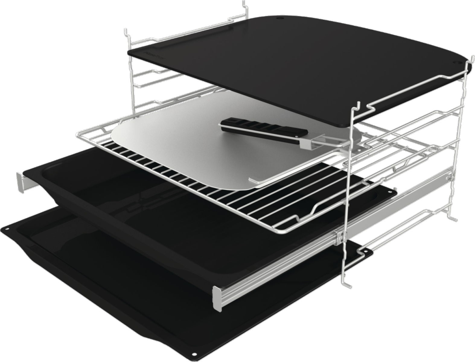 Díky kombinaci inteligentního proudění vzduchu, optimálně rozmístěným mezerám mezi plechy a speciálně tvarovaným dutinám se jídlo peče rovnoměrně na všech úrovních. Větší objem trouby navíc zajišťuje skvělý přehled o pečení.
