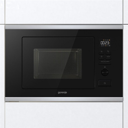 vestavná mikrovlnná trouba; objem 20 l; mikrovlnný výkon 800 W; 8 úrovní ohřevu; otočný talíř o průměru 24,5 cm; 1. Smart Display; 2. Automatické programy; 3. Auto defrost; signál při ukončení procesu; vxšxh cm