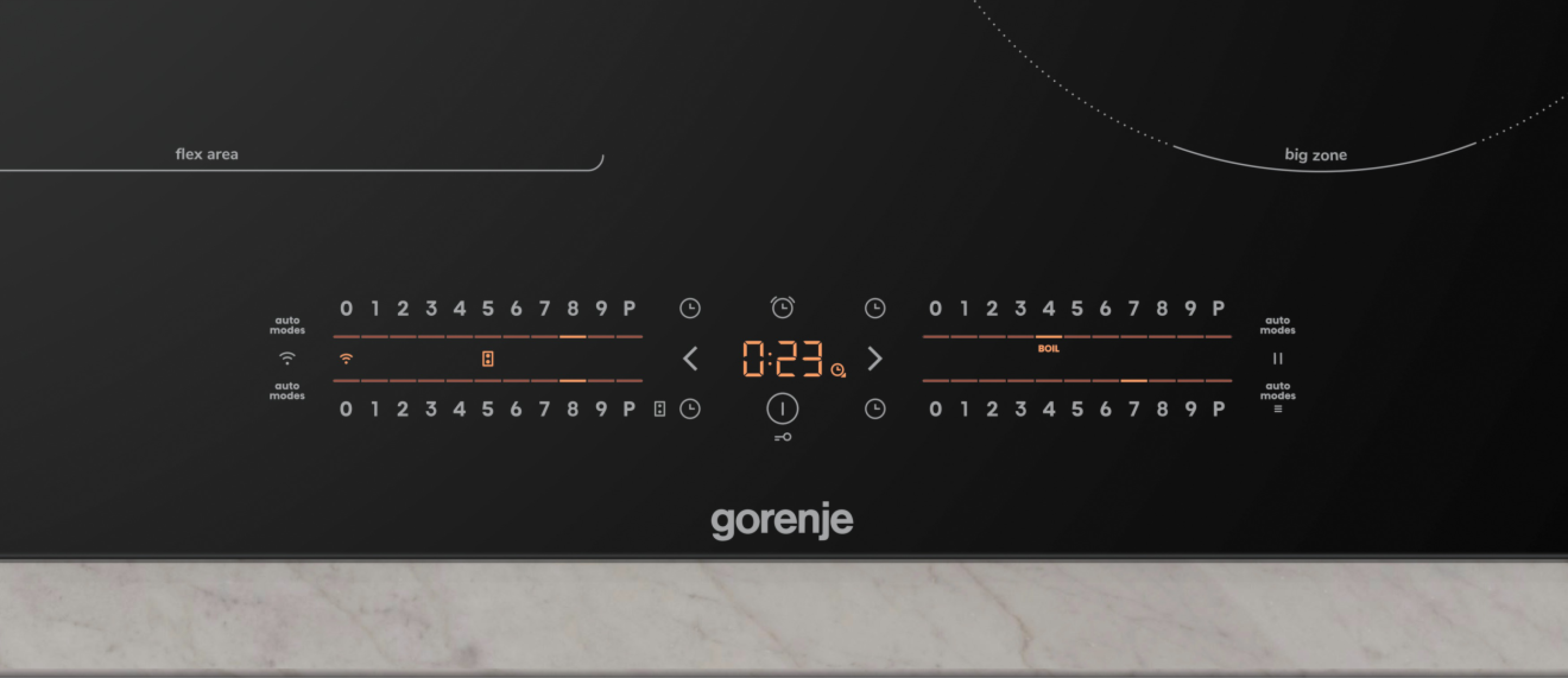 Nová 23 cm BigZone na varných deskách Gorenje je dokonalým řešením pro velké hrnce a pánve. Tato zóna umístěná vpředu zajistí vaši neustálou pozornost při vaření a pojme průměrnou nejpoužívanější velikost hrnce 23 cm. Větší zóna brání výskytu studeným místům v hrnci a pokaždé zajistí chutná jídla. Rozlučte se s trápením při vaření s novou extra velkou zónou na varných deskách Gorenje, ideálně umístěnou pro maximalizaci frekvence a účelu použití.