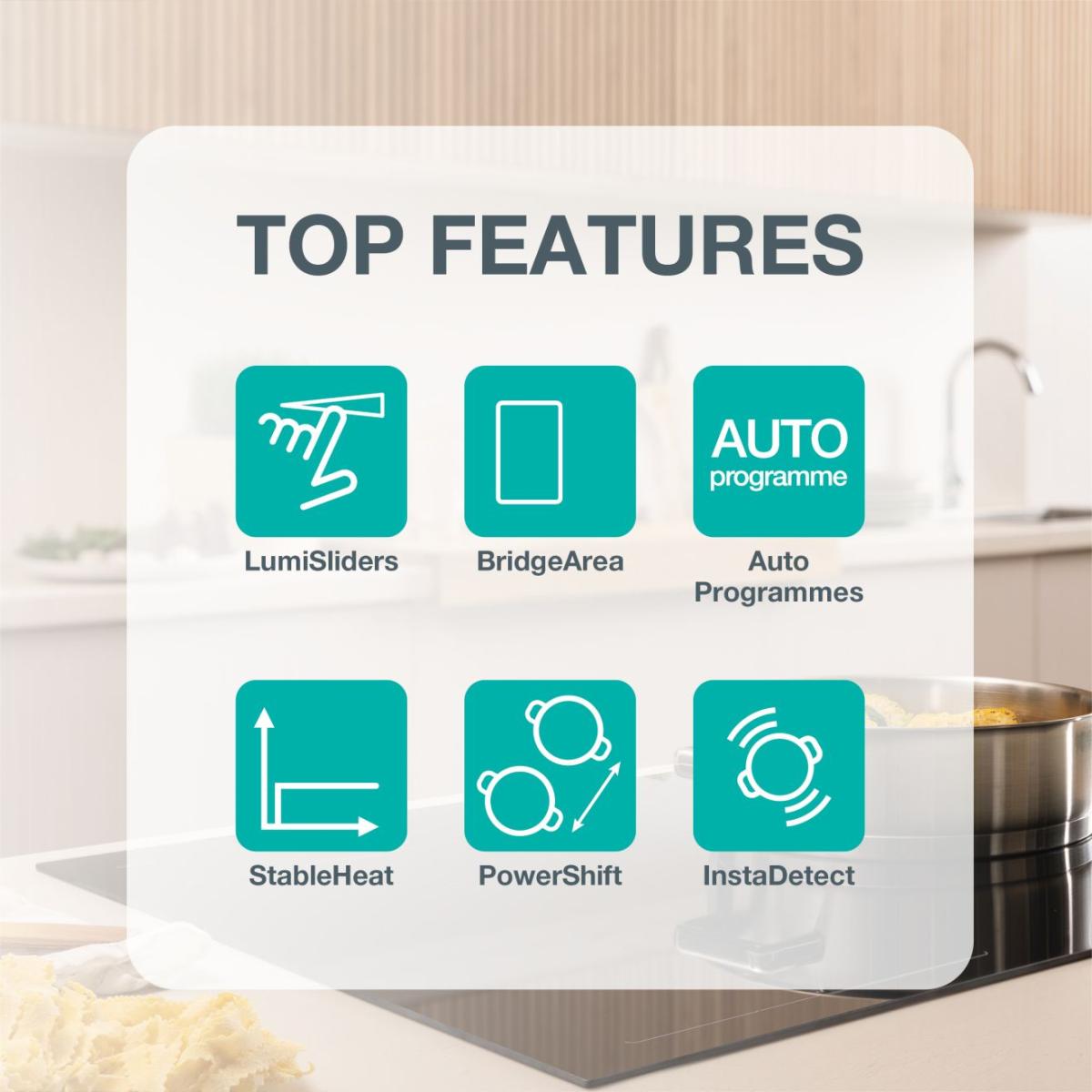 Vařte efektivněji a bez starostí díky nové funkci, která umožňuje současný přenos pánve, času a úrovně výkonu mezi různými zónami indukční varné desky. Jednoduše přesuňte hrnec a uvolněte místo pro další, přesně tam, kde ho potřebujete.