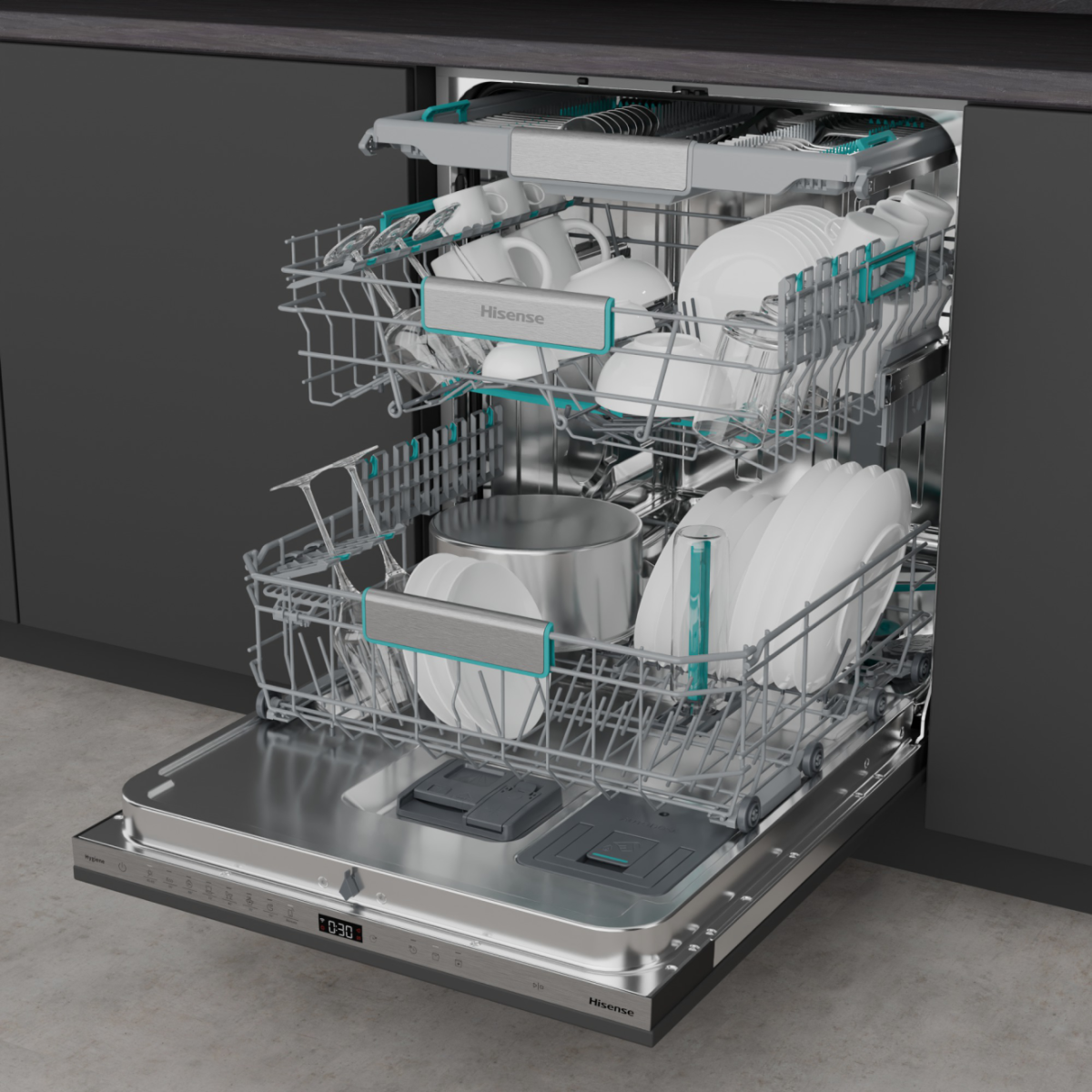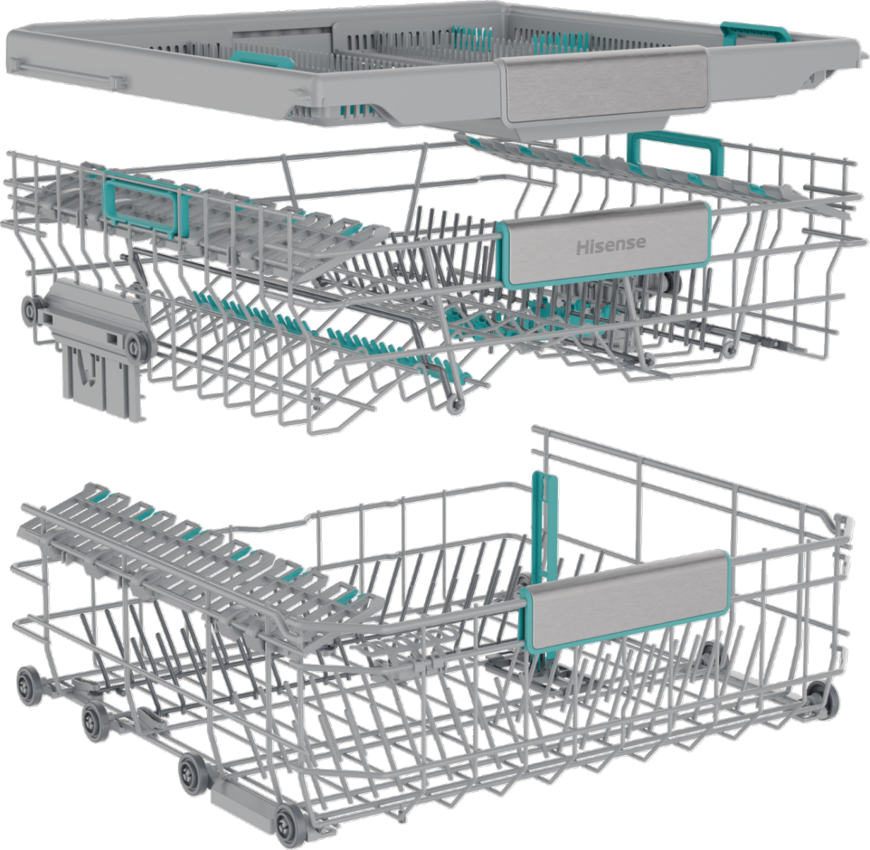 Koše mají zvýrazněné pohyblivé prvky a flexibilní uspořádání, které usnadňuje vkládání nádobí. Dvoustupňové nastavení výšky pojme i větší hrnce a talíře, zatímco sklopné držáky na talíře a zásuvka na příbory zajistí skvělé mycí a sušicí výsledky. Vše je navrženo pro jednoduché a efektivní použití.
