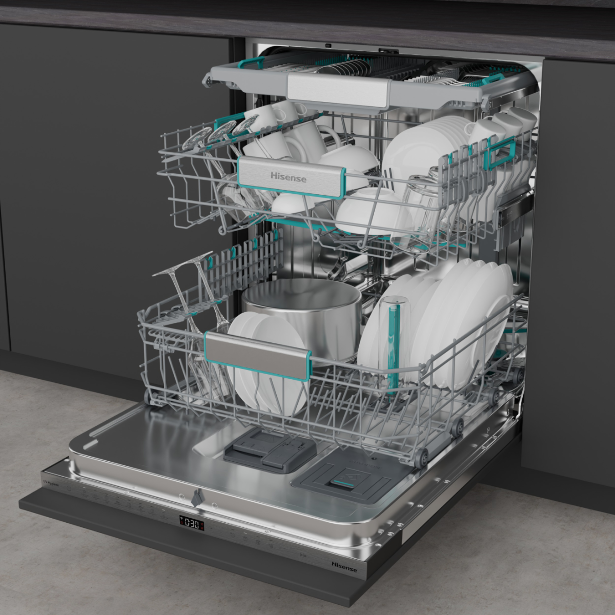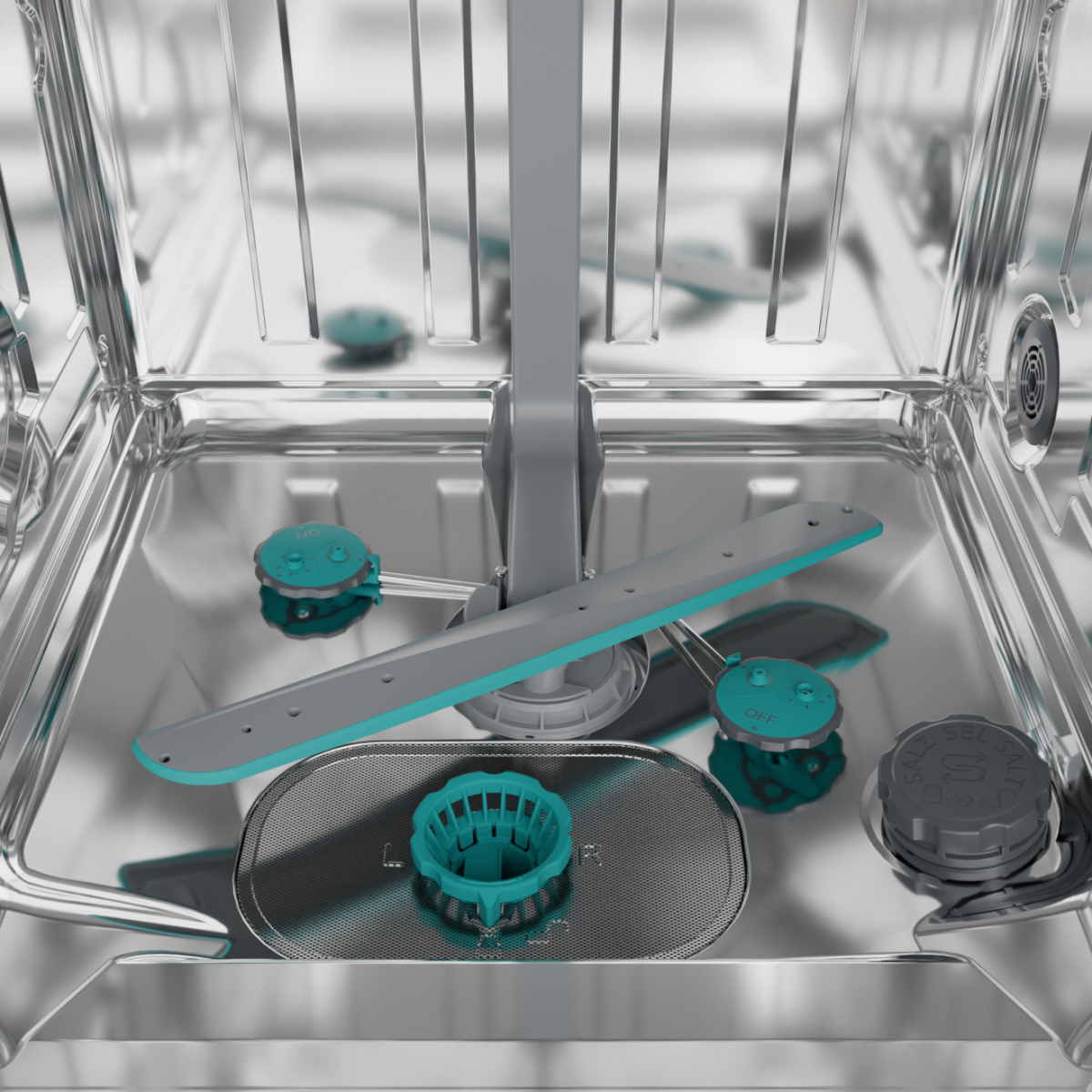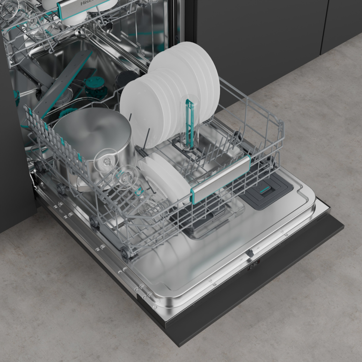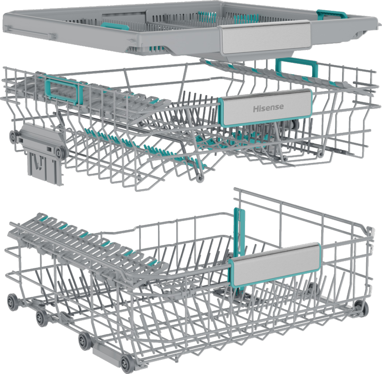 Koše mají zvýrazněné pohyblivé prvky a flexibilní uspořádání, které usnadňuje vkládání nádobí. Dvoustupňové nastavení výšky pojme i větší hrnce a talíře, zatímco sklopné držáky na talíře a zásuvka na příbory zajistí skvělé mycí a sušicí výsledky. Vše je navrženo pro jednoduché a efektivní použití.