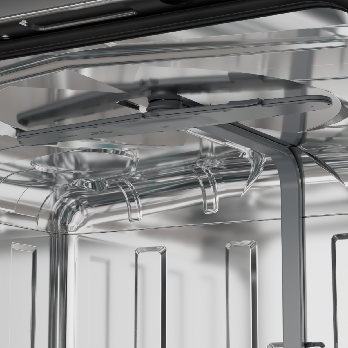 Dvě silné trysky v zadní části myčky si poradí i s tou největší špínou na hrncích, pekáčích nebo pánvích. Silný proud vody snadno odstraní i odolné nečistoty a dosáhne do všech koutů.