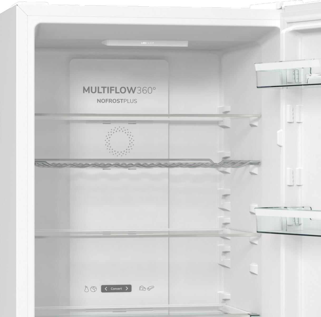 Intenzivní cirkulace chladného vzduchu odvádí z mrazničky vlhkost, takže se netvoří námraza na potravinách ani led na stěnách. Není potřeba žádné ruční odmrazování a celý úložný prostor můžete využít naplno. Balíčky i jednotlivé kusy zmrazených potravin se k sobě nelepí, takže vše zůstává čisté, přehledné a vždy po ruce.