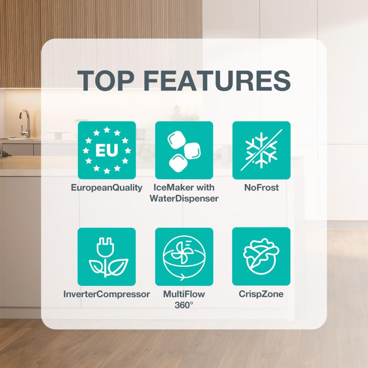Ventilační systém MultiFlow 360° rovnoměrně rozděluje vzduch v chladícím prostoru, aby se zabezpečila optimální cirkulace vzduchu a nejlepší skladovací podmínky pro vaše potraviny.