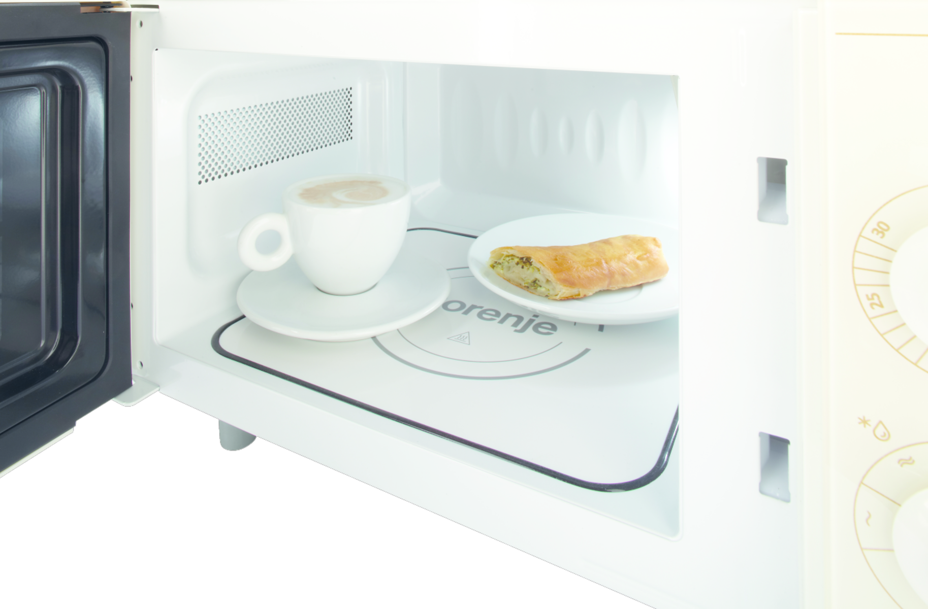 Díky inovativní mikrovlnné distribuci trouba nepotřebuje klasický otočný talíř. Speciální keramický povrch pokrývá celé dno trouby, což ponechává více místa, takže můžete vařit nebo ohřívat i několik jídel současně.