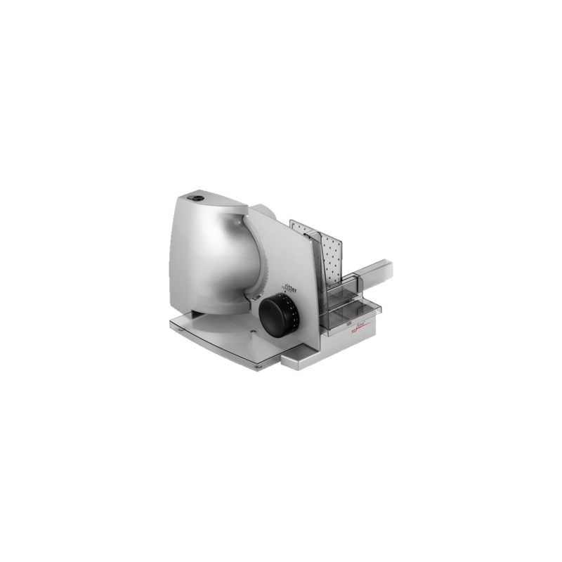 <p>Tloušťka řezu je plynule nastavitelná až do cca 20 mm. Díky odnímatelnému posunu lze také odříznot větší kusy potravin.</p>