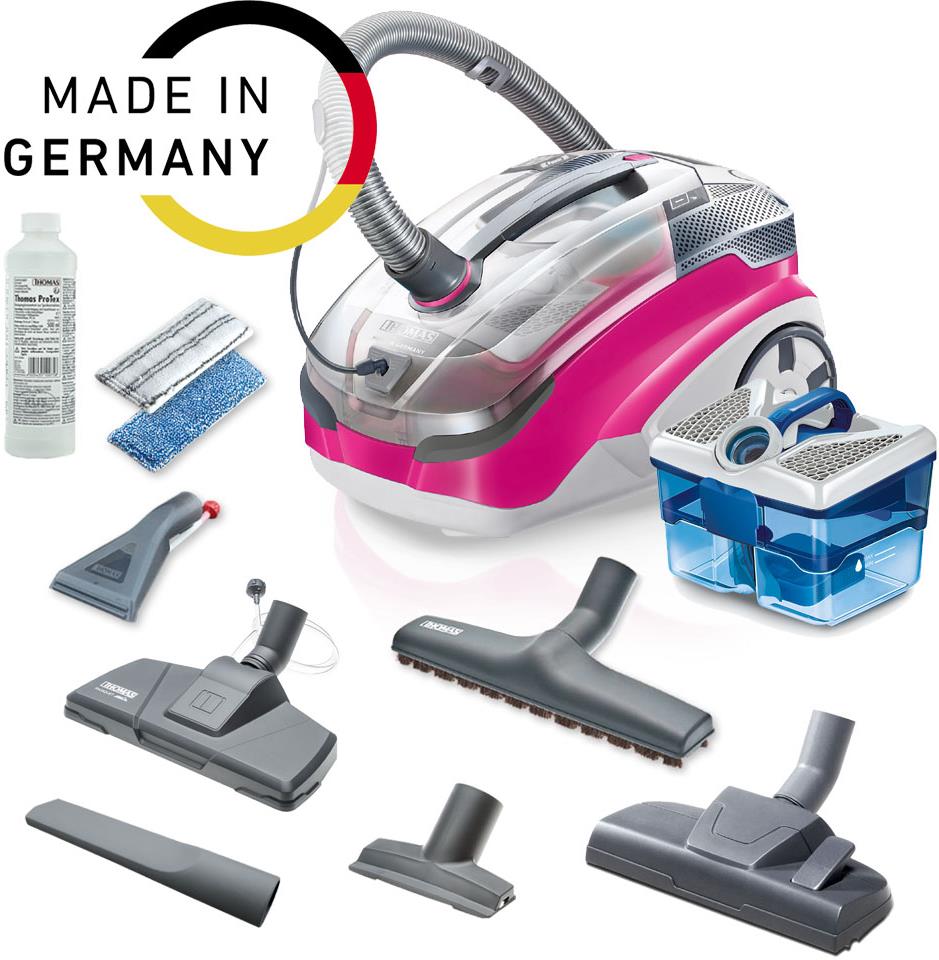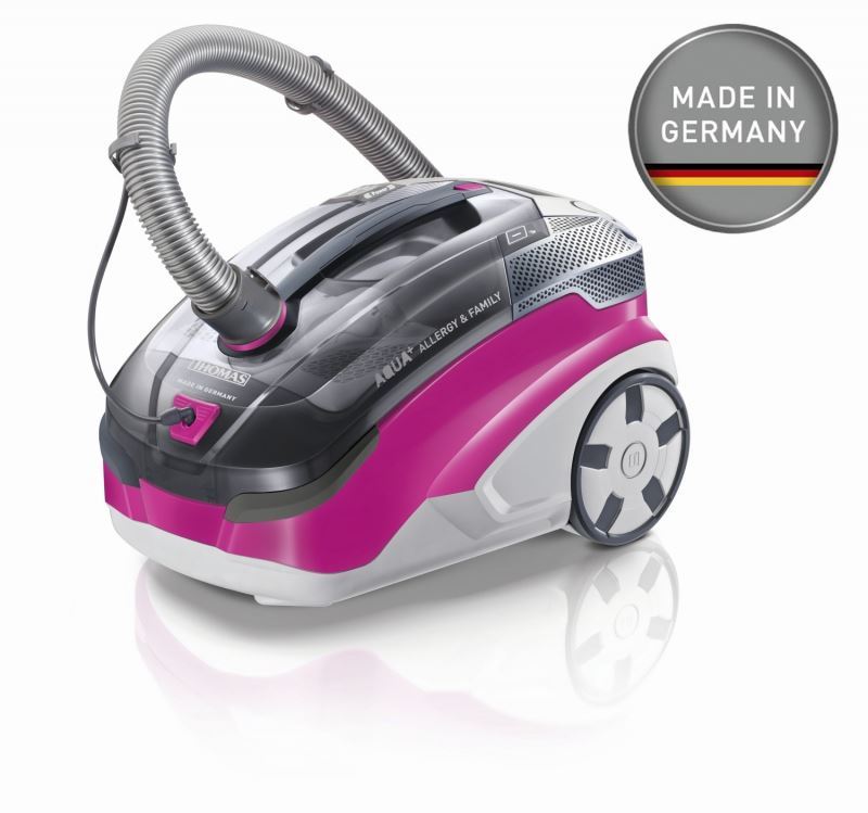 1600 W,aqua box, suché&mokré vysávání,funkce pumpa, speciální hygyenický filtr HEPA, akční radius 11 m, speciální hubice na domácí mazlíčky , parketová hubice,speciální hubice na vytírání Aqua Stealth - MOP,,možnost vysávání do sáčku, extra záruka +12 měsíců,barva šedá/magenta , Made in Germany