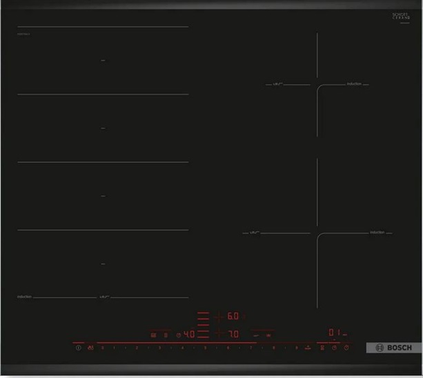 60 cm: komfortní prostor pro 4 hrnce nebo pánve Flexibilita varných zón 1x FlexIndukce: používejte nádobí jakéhokoli tvaru nebo velikosti kdekoli na varné zóně dlouhé 40 cm. varná zóna, přední levá: 240 mm, 190 mm, 2.2 kW (max. výkon 3.7 kW) varná zóna, zadní levá: 240 mm, 190 mm, 2.2 kW (max. výkon 3.7 kW) varná zóna, zadní pravá: 145 mm , 1.4 kW (max. výkon 2.2 kW) varná zóna, přední pravá: 210 mm, 2.2 kW (max. výkon 3.7 kW) Komfort senzorové ovládání DirectSelect Premium: snadné ovládání a nastavení stupně výkonu pomocí osvětlené dotykové liště (při vypnutí není ovládání viditelné). 17 stupňů výkonu: přesné nastavení 17 stupňů výkonu (9 hlavních a 8 mezi stupňů výkonu) funkce udržování teploty: udržujte pokrmy teplé při přednastavené nízké úrovni výkonu minutka, timer Doba vaření, timer: vypne varnou zónu na konci nastaveného času (např. při přípravě vařejných vajec). minutka, timer Doba vaření, timer: na konci nastaveného času zazní akustický signál (např. při vaření těstovin). timer Doba vaření: ukazuje, kolik času uplynulo od spuštění timeru (např. u brambor). Úspora času a efektivita PowerBoost (nastavitelné pro všechny varné zóny): využijte o 50 % více výkonu při vaření např. vody, než nabízí nejvyšší standardní stupeň výkonu PanBoost: rozehřejte pánve rychleji než nabízí nejvyšší standardní stupeň výkonu, a zároveň ochraňte jejich povrchovou úpravu MoveMode (3 stupně výkonu): zvyšte nebo snižte stupeň výkonu jednoduše pohybem hrnce dopředu nebo dozadu. QuickStart: při zapnutí varná deska automaticky vybere varnou zónu s nádobím (umístěným ve vypnutém stavu) ReStart: v případě neúmyslného vypnutí obnovte všechna předchozí nastavení opětovným zapnutím varné desky do 4 sekund Speciální výbava PerfectFry pečicí senzor s 5 stupni výkonu: zabraňuje připálení díky automatické regulaci teploty integrovaného senzoru Design Komfort profil - fazeta vpředu a vzadu, profily po stranách Bezpečnost 2-stupňový ukazatel zbytkového tepla pro každou varnou zónu: indikuje, které varné zóny jsou stále horké nebo teplé dětská pojistka: zabraní nechtěné aktivaci varné desky ochrana při utírání: otřete překypělou tekutinu bez neúmyslné změny nastavení (blokování všech dotykových tlačítek na 30 sekund). hlavní vypínač: vypnutí všech varných zón pouhým stisknutím tlačítka bezpečnostní vypínání: z bezpečnostních důvodů se ohřev vypne po nastaveném čase bez další uživatelské interakce (lze nastavit) ukazatel spotřeby energie: ukazuje spotřebu elektřiny posledního procesu vaření. Instalace rozměry spotřebiče (V x Š x H): 51 x 606 x 527 mm rozměry pro vestavbu (V x Š x H) : 51 x 560 x 490 - 500 mm min. tloušťka pracovní desky: 16 mm příkon: 7.4 kW PowerManagement : v případě potřeby omezí maximální výkon (závisí na pojistkové ochraně elektrické instalace) délka připojovacího kabelu: 110 cm, připojovací kabel je součástí spotřebiče
