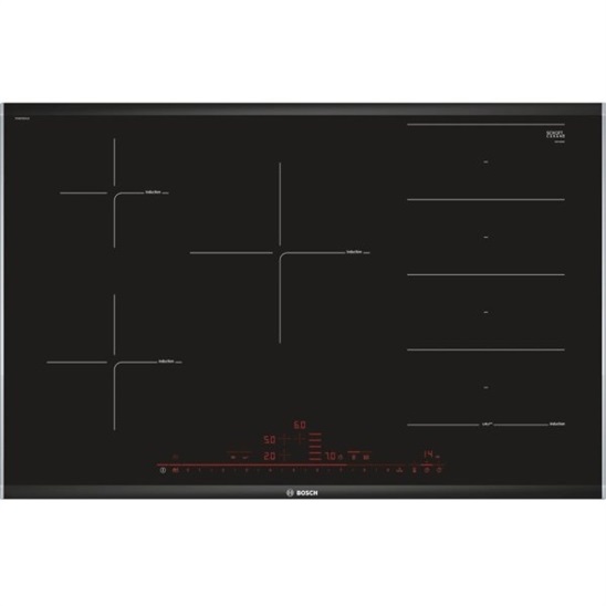 80 cm: komfortní prostor pro 5 hrnce nebo pánve Flexibilita varných zón 1x FlexIndukce: používejte nádobí jakéhokoli tvaru nebo velikosti kdekoli na varné zóně dlouhé 40 cm. varná zóna, přední levá: 180 mm, 1.8 kW (max. výkon 3.1 kW) varná zóna, zadní levá: 145 mm, 1.4 kW (max. výkon 2.2 kW) varná zóna, střední vzadu: 240 mm, 2.2 kW (max. výkon 3.7 kW) varná zóna, zadní pravá: 210 mm, 200 mm , 2.2 kW (max. výkon 3.7 kW) varná zóna, přední pravá: 210 mm, 200 mm, 2.2 kW (max. výkon 3.7 kW) Komfort senzorové ovládání DirectSelect Premium: snadné ovládání a nastavení stupně výkonu pomocí osvětlené dotykové liště (při vypnutí není ovládání viditelné). 17 stupňů výkonu: přesné nastavení 17 stupňů výkonu (9 hlavních a 8 mezi stupňů výkonu) funkce udržování teploty: udržujte pokrmy teplé při přednastavené nízké úrovni výkonu minutka, timer Doba vaření, timer: vypne varnou zónu na konci nastaveného času (např. při přípravě vařejných vajec). minutka, timer Doba vaření, timer: na konci nastaveného času zazní akustický signál (např. při vaření těstovin). timer Doba vaření: ukazuje, kolik času uplynulo od spuštění timeru (např. u brambor). Úspora času a efektivita PowerBoost (nastavitelné pro všechny varné zóny): využijte o 50 % více výkonu při vaření např. vody, než nabízí nejvyšší standardní stupeň výkonu PanBoost: rozehřejte pánve rychleji než nabízí nejvyšší standardní stupeň výkonu, a zároveň ochraňte jejich povrchovou úpravu MoveMode (3 stupně výkonu): zvyšte nebo snižte stupeň výkonu jednoduše pohybem hrnce dopředu nebo dozadu. QuickStart: při zapnutí varná deska automaticky vybere varnou zónu s nádobím (umístěným ve vypnutém stavu) ReStart: v případě neúmyslného vypnutí obnovte všechna předchozí nastavení opětovným zapnutím varné desky do 4 sekund Speciální výbava PerfectFry pečicí senzor s 5 stupni výkonu: zabraňuje připálení díky automatické regulaci teploty integrovaného senzoru Design Komfort profil - fazeta vpředu a vzadu, profily po stranách Bezpečnost 2-stupňový ukazatel zbytkového tepla pro každou varnou zónu: indikuje, které varné zóny jsou stále horké nebo teplé dětská pojistka: zabraní nechtěné aktivaci varné desky ochrana při utírání: otřete překypělou tekutinu bez neúmyslné změny nastavení (blokování všech dotykových tlačítek na 30 sekund). hlavní vypínač: vypnutí všech varných zón pouhým stisknutím tlačítka bezpečnostní vypínání: z bezpečnostních důvodů se ohřev vypne po nastaveném čase bez další uživatelské interakce (lze nastavit) ukazatel spotřeby energie: ukazuje spotřebu elektřiny posledního procesu vaření. Instalace rozměry spotřebiče (V x Š x H): 51 x 816 x 527 mm rozměry pro vestavbu (V x Š x H) : 51 x 750 x 490 - 500 mm min. tloušťka pracovní desky: 16 mm příkon: 7.4 kW PowerManagement : v případě potřeby omezí maximální výkon (závisí na pojistkové ochraně elektrické instalace) délka připojovacího kabelu: 110 cm, připojovací kabel je součástí spotřebiče