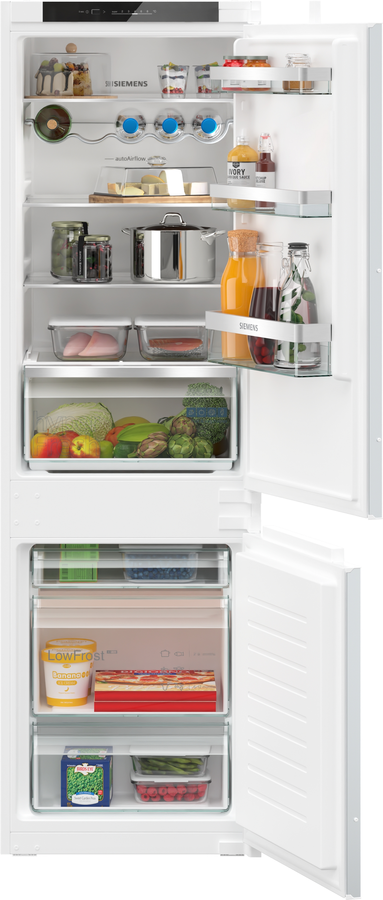 KI86VVSE0 Výkon a spotřeba třída spotřeby energie: E užitný objem celkem: 267 l spotřeba energie: 229 kwh/rok klimatická třída: SN-ST hlučnost: 35 dB; třída hlučnosti: B doba skladování při poruše: 9 h hod. integrovatelné, pojezdy Na základě výsledků normalizované zkoušky trvající 24 hodin. Skutečná spotřeba energie závisí na způsobu použití a umístění spotřebiče. Design LED osvětlení v chladící částí Komfort a bezpečnost elektronické ovládání - LED ukazatele 1 chladící okruh/ 1 kompresor funkce super chlazení: ne funkce superFreezing: automatické vypnutí akustický signál otevřených dveří Chladicí prostor čistý objem chladící části : 183 l 4 safety glass shelves, thereof 3 height adjustable 1 x přihrádka ve dveřích vyšší 3 x přihrádka ve dveřích, z toho 1 x vysoká přihrádka držák na lahve Freshness System 1 x zásuvka hyperFresh s regulací vlhkosti - udrží ovoce a zeleninu déle čerstvé Mrazicí prostor čistý objem mrazicí části : 84 l mrazicí kapacita 24h : 4.2 kg funkce superFreezing 3 x transparentní mrazicí box, z toho 1 bigBox Rozměry rozměry spotřebiče (V x Š x H) : 177.2 cm x 54.1 cm x 54.8 cm rozměry niky (V x Š x H): 177.5 cm x 56.0 cm x 55.0 cm Technické informace závěs dveří vpravo, volitelný napětí: 220 - 240 V Příslušenství 1 x miska na led Specifika Prostředí a bezpečnost Instalace jednoduchá instalace Všeobecné informace