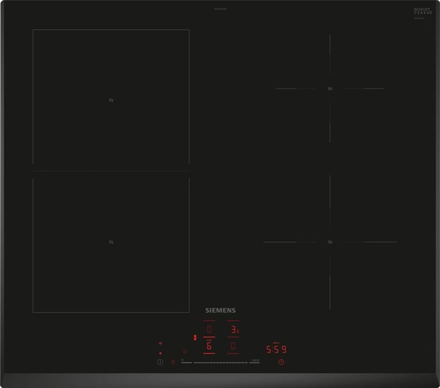 60 cm: komfortní prostor pro 4 hrnce nebo pánve Flexibilita varných zón combiZone: umožní používat větší nádobí spojením dvou klasických varných zón do jedné velké zóny varná zóna, přední levá: 190 mm, 210 mm, 2.5 kW (max. výkon 3.7 kW) varná zóna, zadní levá: 190 mm, 210 mm, 2.5 kW (max. výkon 3.7 kW) varná zóna, zadní pravá: 145 mm , 1.6 kW (max. výkon 2.2 kW) varná zóna, přední pravá: 180 mm, 2 kW (max. výkon 3.1 kW) Komfort senzorové ovládání touchSlider+: snadné nastavení a kontrola stupně výkonu díky dotykovému ovládacímu panelu tlačítko Oblíbené: přímý přístup k oblíbeným funkcím pomocí nastavitelného tlačítka (k dispozici s připojeným účtem Home Connect) 17 stupňů výkonu: přesné nastavení 17 stupňů výkonu (9 hlavních a 8 mezi stupňů výkonu) via HC app/MyButton: udržujte pokrmy teplé při přednastavené nízké úrovni výkonu timer (časovač vypnutí): vypne varnou zónu na konci nastaveného času (např. pro vařená vejce) minutka (lze zvolit místo časovače vypnutí): na konci nastaveného času zazní alarm (např. u těstovin) hlasitost lze přizpůsobit osobním preferencím a potřebám Úspora času a efektivita powerBoost (nastavitelné pro všechny varné zóny): využijte o 50 % více výkonu při vaření např. vody, než nabízí nejvyšší standardní stupeň výkonu via HC app/MyButton: rozehřejte pánve rychleji než nabízí nejvyšší standardní stupeň výkonu, a zároveň ochraňte jejich povrchovou úpravu quickStart: při zapnutí varná deska automaticky vybere varnou zónu s nádobím (umístěným ve vypnutém stavu) reStart: v případě neúmyslného vypnutí obnovte všechna předchozí nastavení opětovným zapnutím varné desky do 4 sekund Konektivita vzdálená kontrola a ovládání: zkontrolujte, zda je varná deska vypnutá i když nejste doma, a najděte recepty nebo další funkce v aplikaci Home Connect cookConnect system : automaticky zapne odsavač par při vaření díky WiFi propojení varné desky a odsavače par ano: odsavač par automaticky přizpůsobuje výkon ventilátoru na základě nastavení varné desky, která průběžně poskytuje informace o průběhu vaření (s odpovídajícím odsavačem par a propojeným účtem Home Connect) Smart home trigger (nastavitelný prostřednictvím aplikace Home Connect): otevřete chytrý svět z varné desky (nutný je partnerský přístup) možnost aktualizace spotřebiče (dostupná s připojeným účtem Home Connect): udržujte spotřebič vždy aktuální s nejnovějším stavem softwaru Design U-fazeta Bezpečnost 2-stupňový ukazatel zbytkového tepla pro každou varnou zónu: indikuje, které varné zóny jsou stále horké nebo teplé dětská pojistka: zabraní nechtěné aktivaci varné desky funkce Pauza: umožňuje pozastavit proces ohřevu, např. za účelem otevření dveří hlavní vypínač: vypnutí všech varných zón pouhým stisknutím tlačítka bezpečnostní vypínání: z bezpečnostních důvodů se ohřev vypne po nastaveném čase bez další uživatelské interakce (lze nastavit) Instalace rozměry spotřebiče (V x Š x H): 51 x 592 x 522 mm rozměry pro vestavbu (V x Š x H) : 51 x 560 x 490 - 500 mm min. tloušťka pracovní desky: 16 mm příkon: 6.9 kW powerManagement: v případě potřeby omezí maximální výkon (závisí na pojistkové ochraně elektrické instalace)