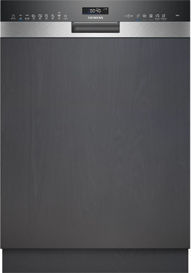 Výkon a spotřeba třída energetické účinnosti:¹ B energie² / voda³: 65 kWh / 9 l kapacita: 14 sad nádobí doba trvání programu:⁴ 3:35 h:min hladina hluku: 40 dB(A) re 1 pW třída hlučnosti: B hlučnost (Tichý program): 39 dB (A) re 1 pW Programy a speciální funkce 8 programů: Eco 50 °C, Auto 45-65 °C, Intenzivní 70 °C, Rychlý 60 °C, Krátký 45 °C, brilliantShine 40 °C, Tichý 50 °C, Oblíbený výchozí Oblíbený program: Předmytí 4 speciální funkce: Vzdálené zapnutí, Shine & Dry, intensiveZone, varioSpeed Plus on demand program péče o myčku nádobí: Machine Care doplňkové funkce dostupné v aplikaci Home Connect: hygienaPlus, Silence on demand Technologie oplachování a sušení systém sušení Zeolith® výměník tepla aquaSenzor dávkovací asistent iQdrive automatické přizpůsobení dle druhu mycího prostředku samočisticí filtrační systém s třívrstvým zvlněným filtrem materiál vnitřní vany: nerezová ocel Komfort koše flexComfort s modře označenými uchopovacími částmi glassZone příborová zásuvka varioDrawer 3 výškově nastavitelné polohy horního koše pomocí systému rackMatic easyGlide kolečka (s kuličkovými ložisky) v horním koši kolečka s nízkým třením ve spodním koši zarážka proti vykolejení spodního koše 2 řady sklopných trnů na talíře v horním koši 8 řad sklopných trnů na talíře ve spodním koši 2 výklopné etažéry na šálky s přední částí z měkkého silikonu v horním koši 2 výklopné etažéry na šálky ve spodním koši protiskluzový ochranný pásek pro sklenice na víno v horním koši speciální držák na skleničky ve spodním koši Ukazatele stavu a obsluha připojení Home Connect přes Wi-Fi dotykové ovládání (černé) popisky na panelu: anglický text emotionLight ukazatel zbývajícího času programu v minutách ukazatel průběhu programu časová předvolba 1-24 hod Bezpečnost aquaStop®: záruka značky Siemens domácí spotřebiče v případě poškození vodou - po celou dobu životnosti spotřebiče* elektronická deaktivace tlačítek technologie šetrného mytí skla díky ventilu na neměkčenou vodu Příslušenství vč. násypky na sůl vč. ochrany pracovní desky před párou Rozměry rozměry spotřebiče (V x Š x H): 81.5 x 59.8 x 57.3 cm