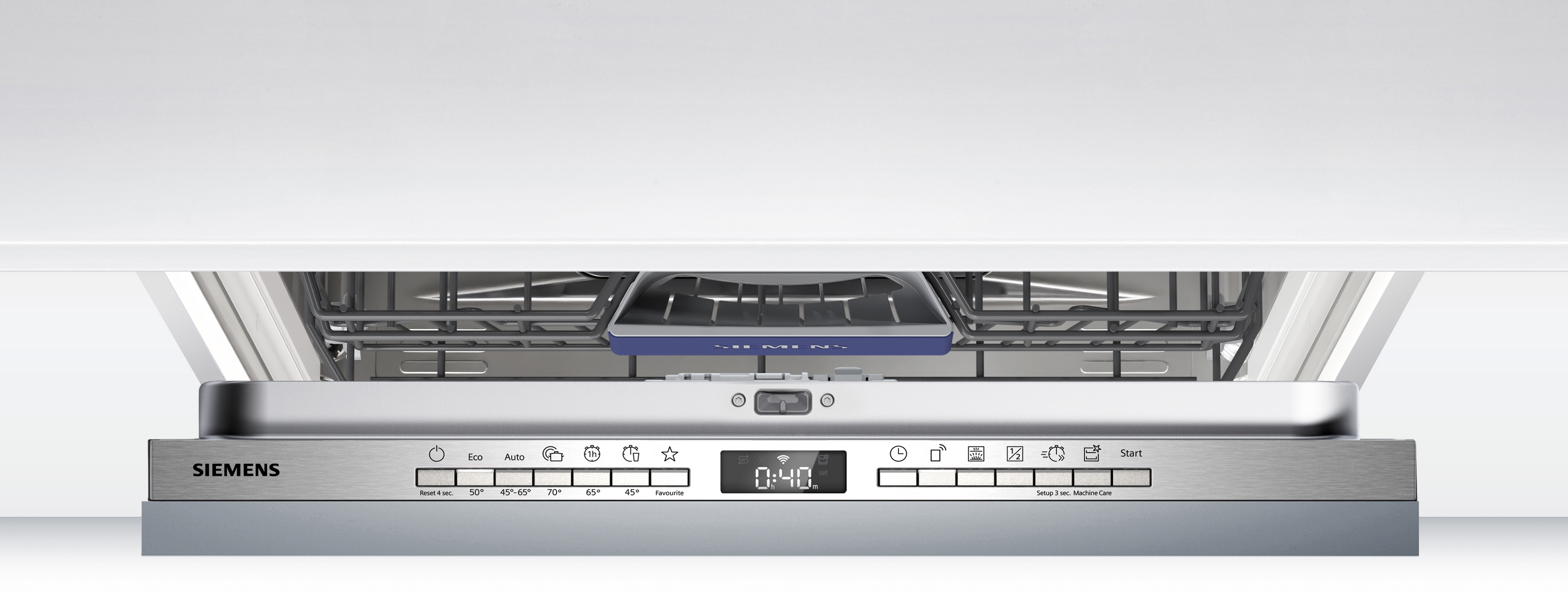 Výkon a spotřeba třída energetické účinnosti:¹ D energie² / voda³: 85 kWh / 9 l kapacita: 14 sad nádobí doba trvání programu:⁴ 4:30 h:min hladina hluku: 42 dB(A) re 1 pW třída hlučnosti: B Programy a speciální funkce 6 programů: Eco 50 °C, Auto 45-65 °C, Intenzivní 70 °C, Hodinový 65 °C, Krátký 45 °C, Oblíbený výchozí Oblíbený program: Předmytí 4 speciální funkce: Vzdálené zapnutí, intensiveZone, Poloviční náplň, varioSpeed Plus on demand program péče o myčku nádobí: Machine Care doplňkové funkce dostupné v aplikaci Home Connect: hygienaPlus, Silence on demand Technologie oplachování a sušení výměník tepla aquaSenzor dávkovací asistent iQdrive automatické přizpůsobení dle druhu mycího prostředku samočisticí filtrační systém s třívrstvým zvlněným filtrem materiál vnitřní vany: nerezová ocel Komfort koše flex příborová zásuvka varioDrawer 3 výškově nastavitelné polohy horního koše pomocí systému rackMatic kolečka s nízkým třením ve spodním koši zarážka proti vykolejení spodního koše 2 řady sklopných trnů na talíře v horním koši 4 řady sklopných trnů na talíře ve spodním koši 2 výklopné etažéry na šálky s držákem sklenic v horním koši 2 výklopné etažéry na šálky ve spodním koši Ukazatele stavu a obsluha připojení Home Connect přes Wi-Fi tlačítka ovládání nahoře popisky na panelu: anglický text infoLight (modrý) ukazatel zbytkového času v minutách akustický signál ukončení programu časová předvolba 1-24 hod Bezpečnost aquaStop®: záruka značky Siemens domácí spotřebiče v případě poškození vodou - po celou dobu životnosti spotřebiče* systém ochrany skla Příslušenství vč. násypky na sůl vč. ochrany pracovní desky před párou Rozměry rozměry spotřebiče (V x Š x H): 81.5 x 59.8 x 55 cm