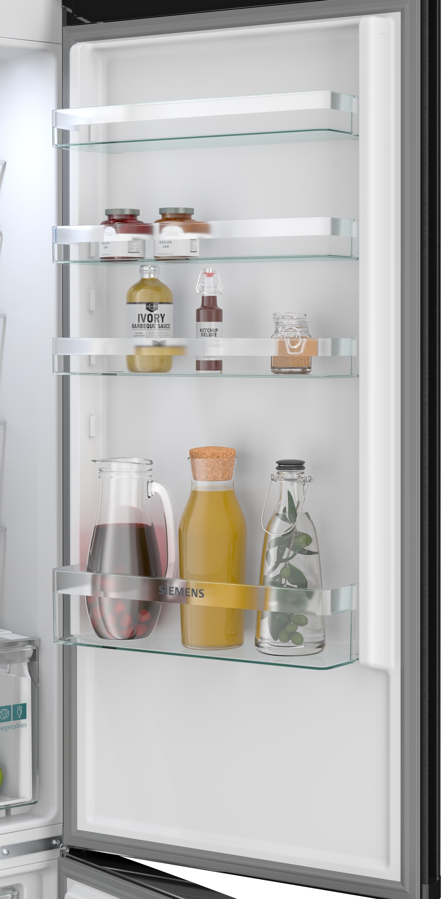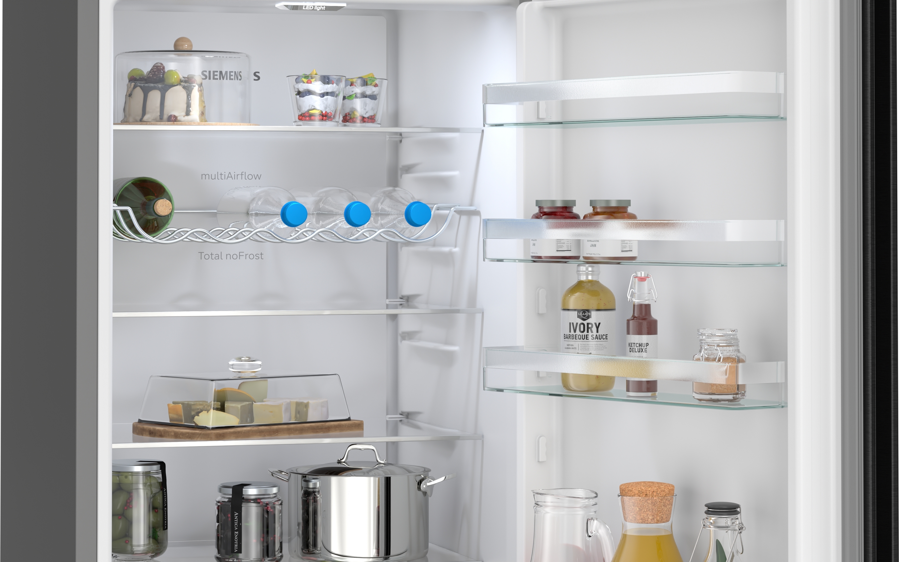 | Informace USP 5 | Vysoce lesklá zadní stěna se systémem multiAirflow pro rovnoměrně chlazené potraviny a nápoje na všech policích. |