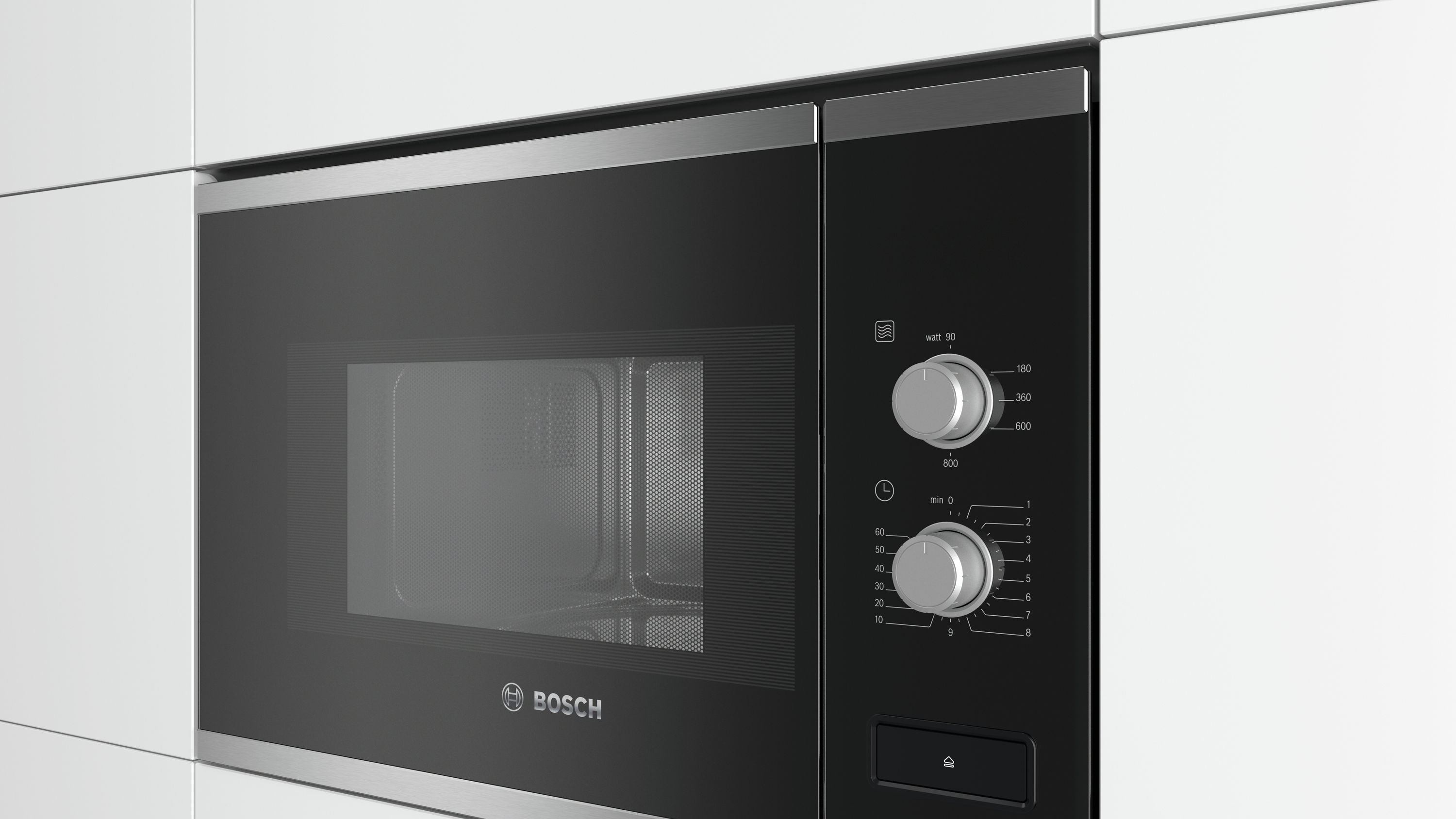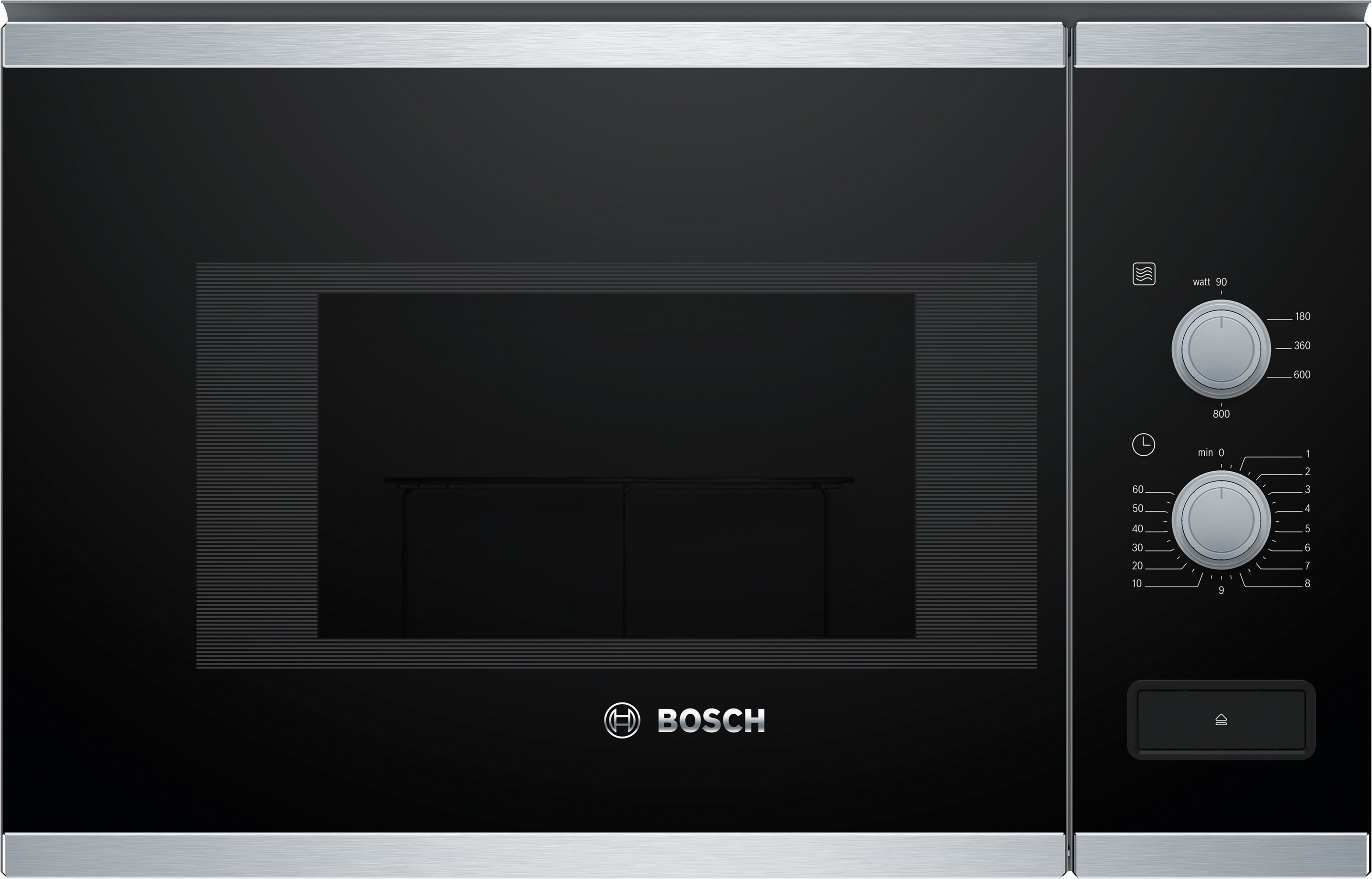 Mikrovlnný ohřev a druhy ohřevu max. výkon: 800 W; 5 stupňů výkonu: 90 W, 180 W, 360 W, 600 W, 800 W vnitřní objem: 20 l Design nerezový vnitřní prostor Čištění CleaningAssistance: hydrolytické čištění Komfort otočné voliče koncept snadné obsluhy - obzvlášť snadné nastavování osvětlení vnitřního prostoru skleněný otočný talíř: 25.5 cm dvířka otvíraná do strany, závěs dveří vlevo tlačítko otevírání Příslušenství 1 x otočný talíř Bezpečnost a energetická náročnost bezpečnostní vypínání spínač kontaktu dveří chladící ventilátor Technické informace délka přívodního kabelu: 130 cm celkový příkon elektro: 1.27 kW napětí: 220 - 230 V vestavný spotřebič do horní skříňky o šířce 60 cm s hloubkou min. 30 cm, pro vestavbu do vysoké skříňky o šířce 60 cm Rozměry rozměry spotřebiče (V x Š x H): 382 mm x 594 mm x 317 mm rozměry niky (V x Š x H): 362 mm - 365 mm x 560 mm - 568 mm x 300 mm „potřebné rozměry naleznete v instalačních materiálech“