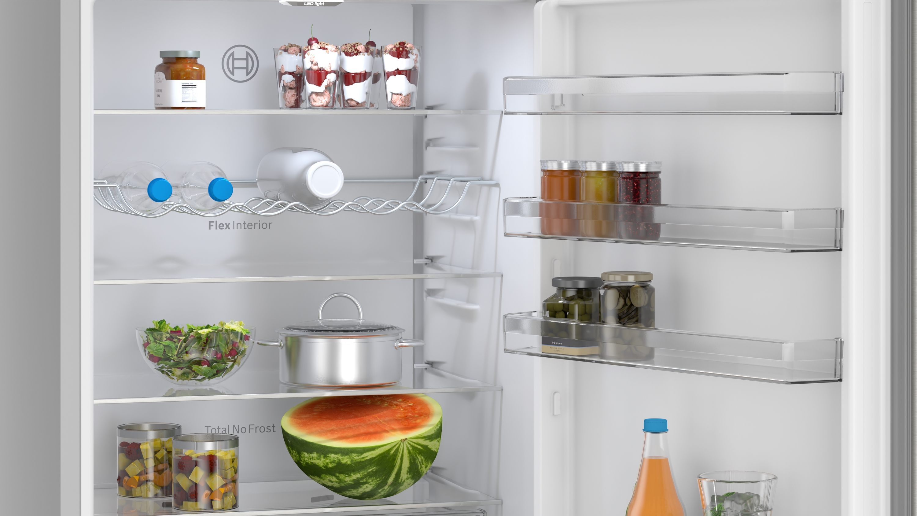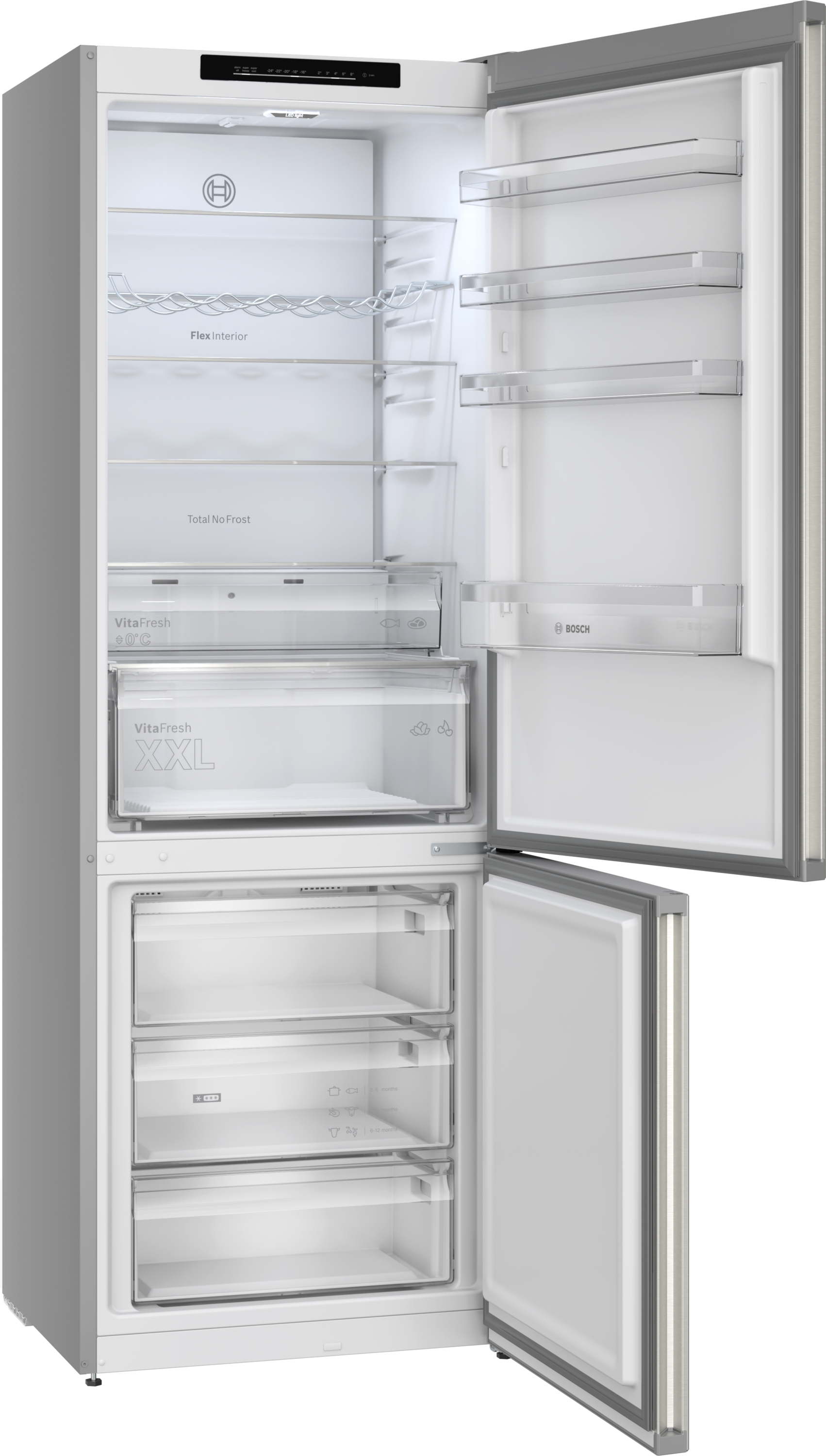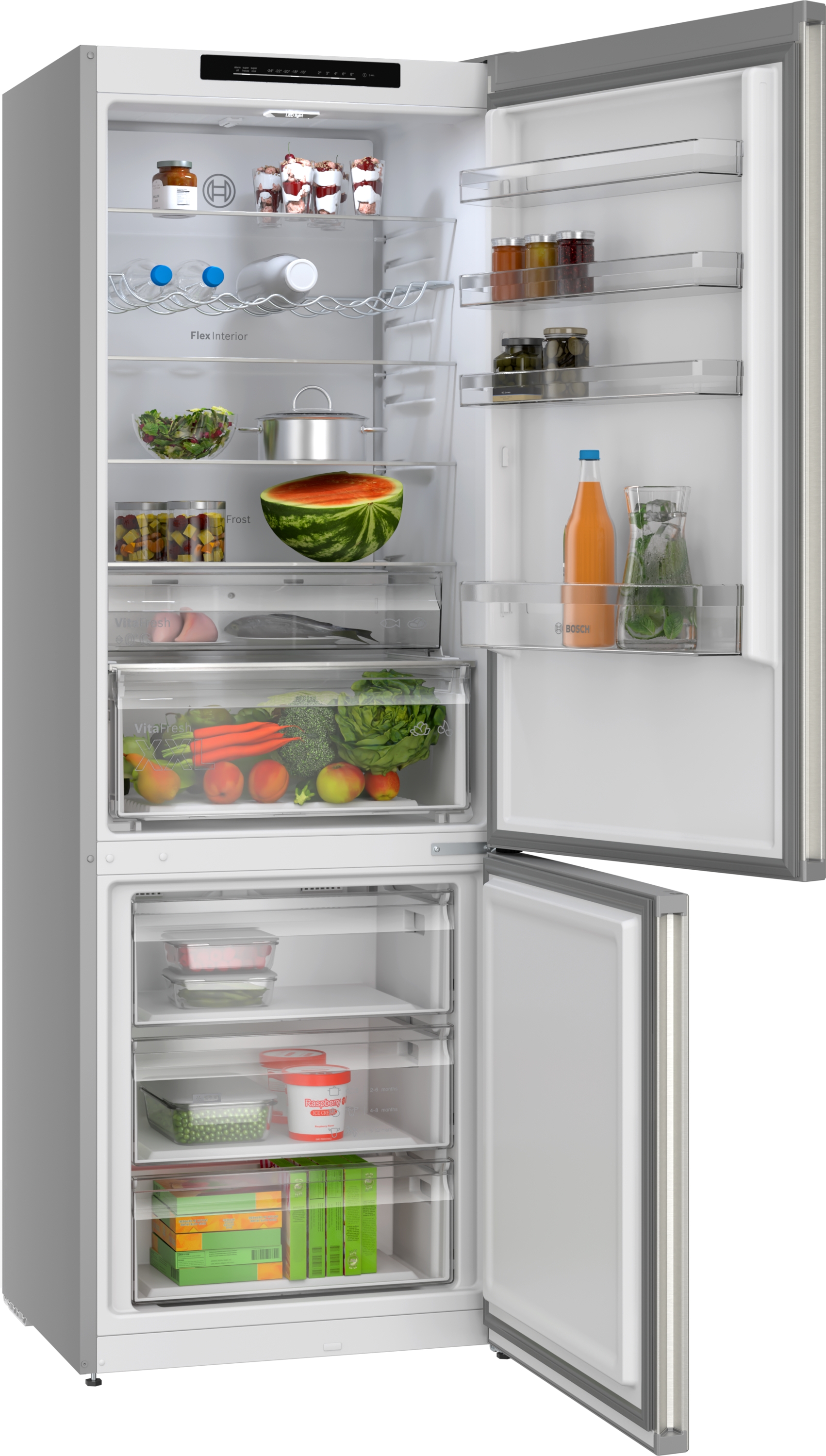 KGN492IDF Total No Frost: už žádné odmrazování ani kapky vody na zadní stěně chladničky dveře: matná ocel s úpravou proti otiskům prstů Výkon a spotřeba třída spotřeby energie: D užitný objem celkem: 440 l čistý objem chladicí části : 311 l čistý objem mrazicí části : 129 l mrazicí kapacita 24h : 11 kg spotřeba energie: 223 kwh/rok klimatická třída: SN-T hlučnost: 35 dB; třída hlučnosti: B doba skladování při poruše: 18 h hod. Design barva dveří: matná ocel s úpravou proti otiskům prstů, barva bočních stran: perleťově šedá vysoce lesklá zadní stěna se systémem multiAirflow integrované, vertikální madlo LED se SoftStart v chladící částí Komfort a bezpečnost Total No Frost: už žádné odmrazování ani kapky vody na zadní stěně chladničky 2 chladicí okruhy LED elektronická regulace teploty - oddělená pro chlazení i mrazení optický a akustický varovný signál při ponechání otevřených dveří optický a akustický varovný signál při zvýšené teplotě ve vnitřním prostoru mrazničky funkce super mrazení Chladicí prostor Multi Airflow systém funkce super chlazení: automatická deaktivace držák na lahve 5 x odkládací plocha z bezpečnostního skla, z toho 3 x výškově nastavitelná 1 x velká přihrádka a 3 x malá odkládací přihrádka ve dveřích Freshness System 1 zásuvka VitaFresh ◄0°C► - ryby a maso zůstanou déle čerstvé 1 x zásuvka VitaFresh s regulací vlhkosti - udrží ovoce a zeleninu déle čerstvé a plné vitamínů Mrazicí prostor 3 x transparentní mrazicí zásuvka super mrazení: manuální / automatická aktivace Rozměry rozměry spotřebiče (V x Š x H) : 203.0 cm x 70.0 cm x 66.7 cm Technické informace závěs dveří vpravo, volitelný výškově nastavitelné nožičky vpředu délka přívodního kabelu: 231 cm napětí: 220 - 240 V Příslušenství 1 x miska na led Specifika Na základě výsledků normalizované zkoušky trvající 24 hodin. Skutečná spotřeba energie závisí na způsobu použití a umístění spotřebiče. Prostředí a bezpečnost Instalace Všeobecné informace