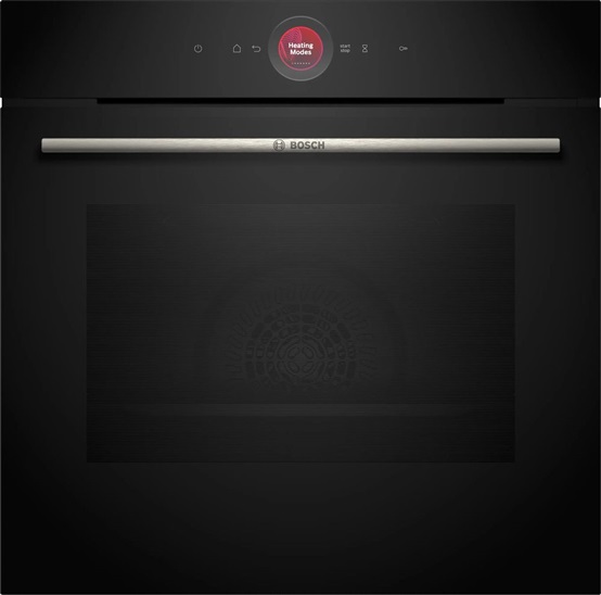 Typ trouby / druh ohřevu Pečicí trouba se 14 druhy ohřevu: 3D horký vzduch, horní/spodní ohřev, gril s cirkulací vzduchu, velkoplošný gril, maloplošný gril, stupeň pro pizzu, spodní ohřev, pomalé vaření, rozmrazování, předehřívání nádobí, udržování teploty, horký vzduch jemný, horní/spodní ohřev jemný, Air Fry druhy ohřevu nastavitelné pouze prostřednictvím aplikace Home Connect: nechte odležet, předehřev rozsah teploty: 30 °C - 300 °C vnitřní objem: 71 l Výsuvný systém počet pečicích úrovní: 5 ks závěsné rošty, teleskopický výsuv na objednání jako zvláštní příslušenství Design ovládání TouchControl digitální ovládací prstenec smaltovaný vnitřní povrch pečicího prostoru extra velký objem vnitřního prostoru Čištění Cleaning Assistance - hydrolytické čištění celoskleněná vnitřní strana dvířek Komfort Cooking Assistant TFT Touch Display elektronické hodiny s časovou předvolbou automatický návrh teploty ukazatel aktuální teploty ukazatel předehřevu výklopná dvířka, SoftMove - tlumené otevírání a zavírání dvířek SoftMove - tlumené otevírání a zavírání dvířek pomocný systém: funkce Assist Air Fry Function rychloohřev halogenové osvětlení, osvětlení trouby se separátním vypínáním chladící ventilátor Home Connect Příslušenství rošt, smaltovaný plech, smaltovaný hluboký plech Bezpečnost a energetická náročnost nízká teplota dvířek dvířka CoolTouch (3 ks skel) dětská pojistka bezpečnostní vypínání ukazatel zbytkového tepla tlačítko start spínač kontaktu dveří Technické informace délka přívodního kabelu: 120 cm napětí: 220 - 240 V celkový příkon elektro: 3.6 kW energetická třída (dle EU 65/2014): A+ spotřeba energie na cyklus při konvenčním ohřevu: 0.87 kWh(na stupnici třidy energetické účinnosti od A+++ do D) spotřeba energie na cyklus v režimu recirkulace: 0.69 kWh počet pečicích prostorů: 1 zdroj tepla: elektřina objem pečicího prostoru: 71 l Rozměry rozměry spotřebiče (V x Š x H): 595 mm x 594 mm x 548 mm rozměry niky (V x Š x H): 585 mm - 595 mm x 560 mm - 568 mm x 550 mm „potřebné rozměry naleznete v instalačních materiálech“