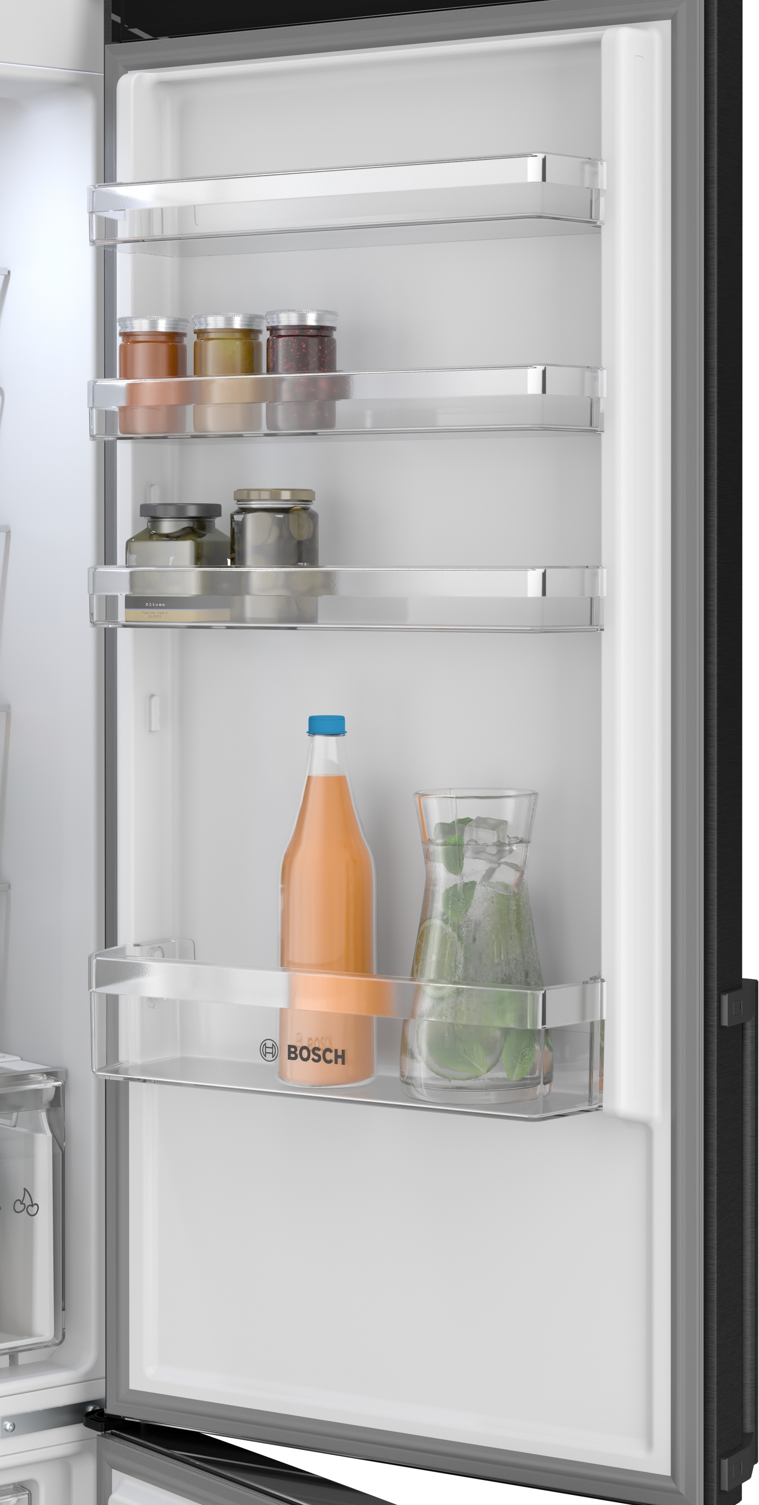 KGN39VXBT Total No Frost: už žádné odmrazování ani kapky vody na zadní stěně chladničky dveře: černá matná ocel s úpravou proti otiskům prstů Výkon a spotřeba třída spotřeby energie: B spotřeba energie: 129 kwh/rok užitný objem celkem: 363 l čistý objem chladicí části : 260 l čistý objem mrazicí části : 103 l hlučnost: 33 dB; třída hlučnosti: B Design barva dveří: černá matná ocel s úpravou proti otiskům prstů, barva bočních stran: antracitová ocel vertikální madlo LED se SoftStart v chladící částí Komfort a bezpečnost Total No Frost: už žádné odmrazování ani kapky vody na zadní stěně chladničky vysoce lesklá zadní stěna se systémem multiAirflow LED elektronická regulace teploty - oddělená pro chlazení i mrazení 2 chladicí okruhy funkce super chlazení: automatická deaktivace super mrazení: manuální / automatická aktivace optický a akustický varovný signál při ponechání otevřených dveří optický a akustický varovný signál při zvýšené teplotě ve vnitřním prostoru mrazničky Chladicí prostor Multi Airflow systém držák na lahve 5 x odkládací plocha z bezpečnostního skla, z toho 3 x výškově nastavitelná 1 x velká přihrádka a 3 x malá odkládací přihrádka ve dveřích Freshness System 1 zásuvka VitaFresh ◄0°C► - ryby a maso zůstanou déle čerstvé 1 x zásuvka VitaFresh s regulací vlhkosti - udrží ovoce a zeleninu déle čerstvé a plné vitamínů Mrazicí prostor objem **** mrazící části: 103 l doba skladování při poruše: 18 h hod. mrazicí kapacita 24h : 10 kg klimatická třída: SN-T 3 x transparentní mrazicí zásuvka funkce super mrazení Rozměry rozměry spotřebiče (V x Š x H) : 203.0 cm x 60.0 cm x 66.5 cm Technické informace závěs dveří vpravo, volitelný výškově nastavitelné nožičky vpředu napětí: 220 - 240 V Příslušenství 1 x miska na led Specifika Na základě výsledků normalizované zkoušky trvající 24 hodin. Skutečná spotřeba energie závisí na způsobu použití a umístění spotřebiče. Prostředí a bezpečnost Instalace Všeobecné informace