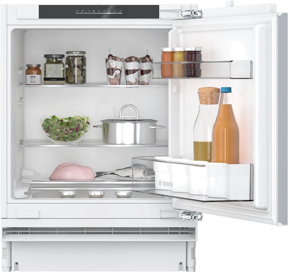 Výkon a spotřeba třída spotřeby energie: E užitný objem celkem: 134 l spotřeba energie: 93 kwh/rok klimatická třída: SN-T hlučnost: 35 dB; třída hlučnosti: B Design LED se SoftStart Komfort a bezpečnost elektronické ovládání - LED ukazatele optický a akustický varovný signál při ponechání otevřených dveří možnost nastavení funkce Holiday možnost nastavení Eco modu Home Connect: vzdálená kontrola a ovládání, vzdálená diagnostika funkce super chlazení: automatická deaktivace automatické odmrazování v chladicí části EasyClean vnitřní prostor Chladicí prostor čistý objem chladicí části : 134 l 3 police ze skla odolného proti rozbití 2 x přihrádka ve dveřích, z toho 1 x vysoká přihrádka držák na lahve v extra hluboké přihrádce ve dveřích přihrádka v základně s posuvným víkem: oddělený úložný prostor např. pro lahve Freshness System Technické informace závěs dveří vpravo, volitelný Podstavná větrání a odvětrávání v podstavci, není nutný výřez v pracovní desce délka přívodního kabelu: 230 cm napětí: 220 - 240 V Rozměry rozměry niky (V x Š x H): 82.0 cm x 60.0 cm x 55.0 cm rozměry spotřebiče (V x Š x H) : 82.0 cm x 59.8 cm x 54.8 cm Příslušenství Specifika Na základě výsledků normalizované zkoušky trvající 24 hodin. Skutečná spotřeba energie závisí na způsobu použití a umístění spotřebiče. Všeobecné informace