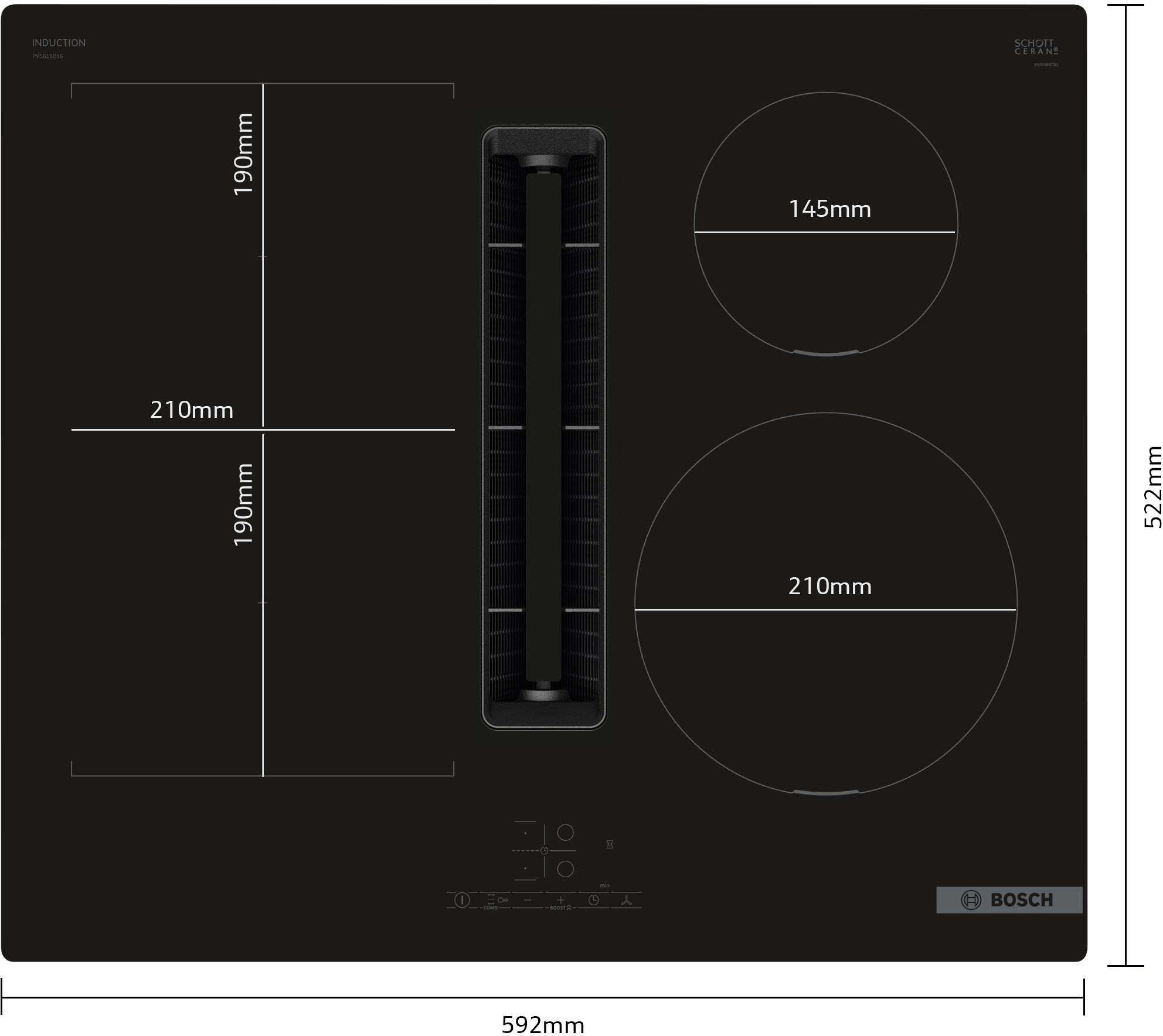 | Průměr varné zóny 3 | 145 mm |