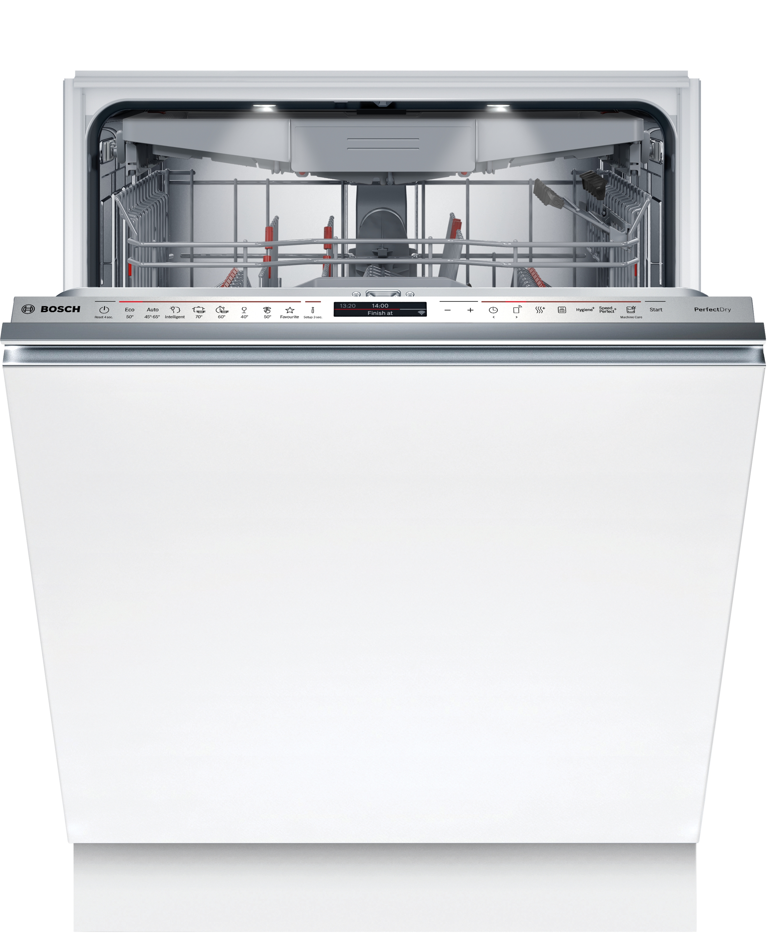 Výkon a spotřeba třída energetické účinnosti:¹ A energie² / voda³: 54 kWh / 9.5 l kapacita: 14 sad nádobí doba trvání programu:⁴ 4:55 h:min hladina hluku: 44 dB(A) re 1 pW třída hlučnosti: B hlučnost (Tichý program): 43 dB (A) re 1 pW Programy a speciální funkce 8 programů: Eco 50 °C, Auto 45-65 °C, Inteligentní, Intenzivní 70 °C, Krátký 60 °C, Sklo 40 °C, Tichý 50 °C, Oblíbený výchozí Oblíbený program: Předmytí 5 speciálních funkcí: Vzdálené zapnutí, Extra sušení, Intensive Zone, Hygiena Plus, SpeedPerfect+ program péče o myčku nádobí: Machine Care doplňkové funkce dostupné v aplikaci Home Connect: Silence on demand, Poloviční náplň Technologie mytí a senzory systém sušení Zeolith® EfficientDry a výměník tepla AquaSenzor dávkovací asistent EcoSilence Drive automatické přizpůsobení dle druhu mycího prostředku samočisticí filtrační systém s třívrstvým zvlněným filtrem materiál vnitřní vany: nerezová ocel Systém košů koše Max Flex Pro s červeně označenými uchopovacími částmi Extra Clean Zone příborová zásuvka VarioDrawer Pro 3 výškově nastavitelné polohy horního koše pomocí systému Rackmatic výsuvný systém Easy Slide - kolečka s kuličkovými ložisky pro nízké tření v horním koši kolečka s nízkým třením ve spodním koši barevné protiskluzové ochranné pásky v horním koši zarážka proti vykolejení spodního koše 6 řad sklopných trnů na talíře v horním koši 8 řad sklopných trnů na talíře ve spodním koši 2 výklopné etažéry na šálky s přední částí z měkkého silikonu v horním koši 2 výklopné etažéry na šálky s držákem sklenic ve spodním koši protiskluzový ochranný pásek na sklenice na víno v horním koši speciální držák na skleničky ve spodním koši Ukazatele stavu a obsluhy připojení Home Connect pomocí Wi-Fi barevný TFT displej s vysokým rozlišením zobrazující grafické symboly a text dotykové ovládání (metalické) tlačítka ovládání nahoře popisky na panelu: anglický text Emotion Light TimeLight zobrazení skutečného času akustický signál ukončení programu časová předvolba 1-24 hod Bezpečnost AquaStop: záruka značky Bosch v případě poškození vodou - po celou dobu životnosti spotřebiče* technologie šetrného mytí skla díky ventilu na neměkčenou vodu Příslušenství vč. násypky na sůl vč. ochrany pracovní desky před párou Rozměry rozměry spotřebiče (V x Š x H): 81.5 x 59.8 x 55 cm